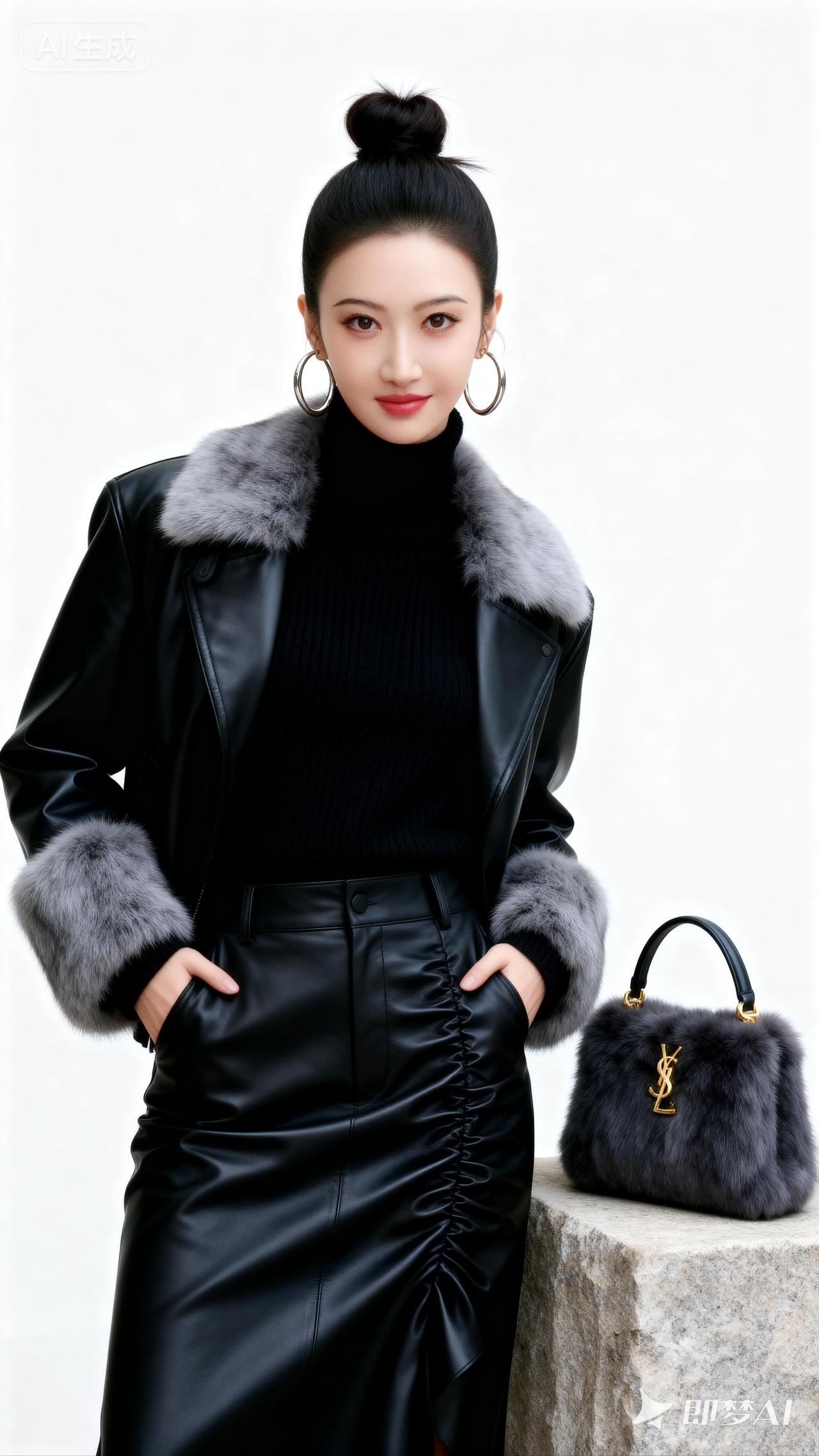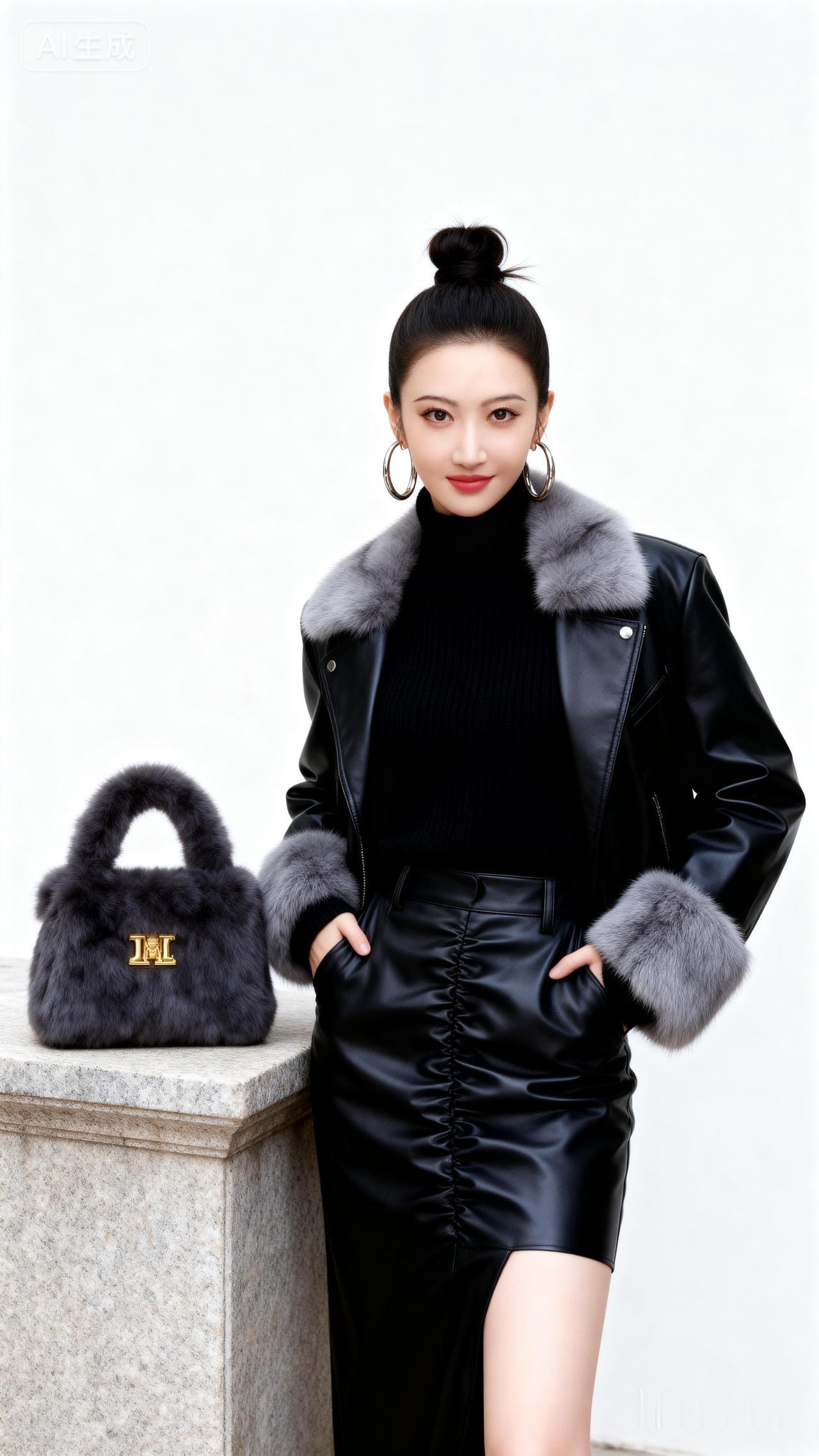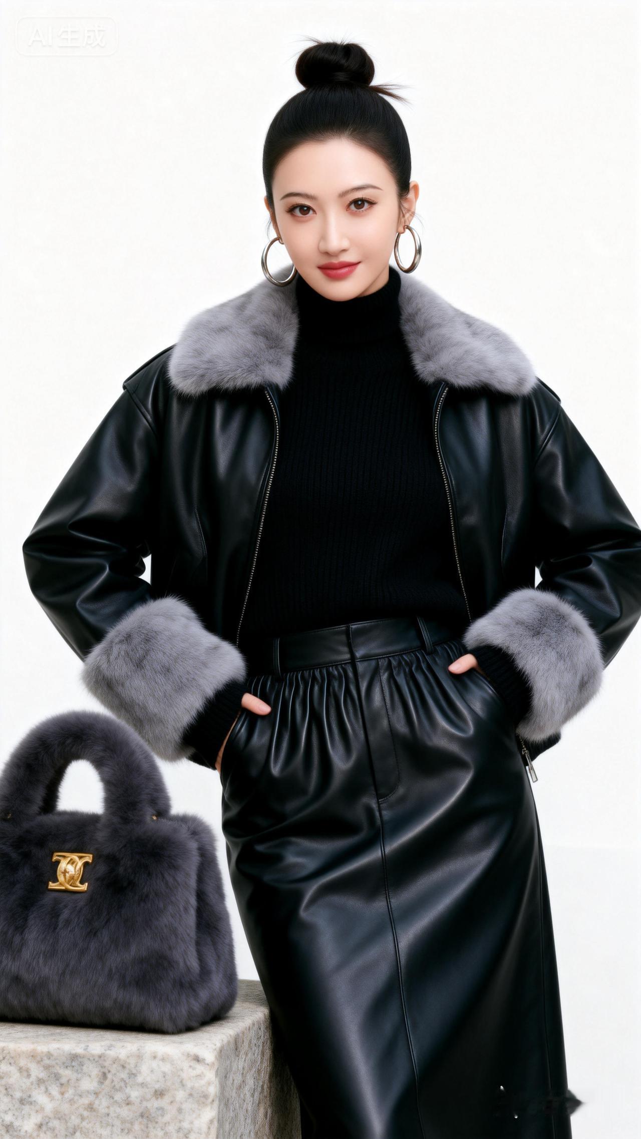 时尚穿搭指南:黑色皮衣+皮裙,优雅大气!