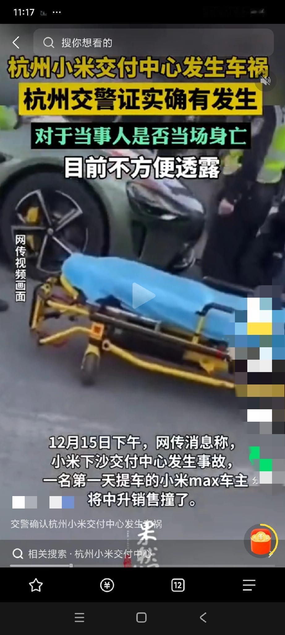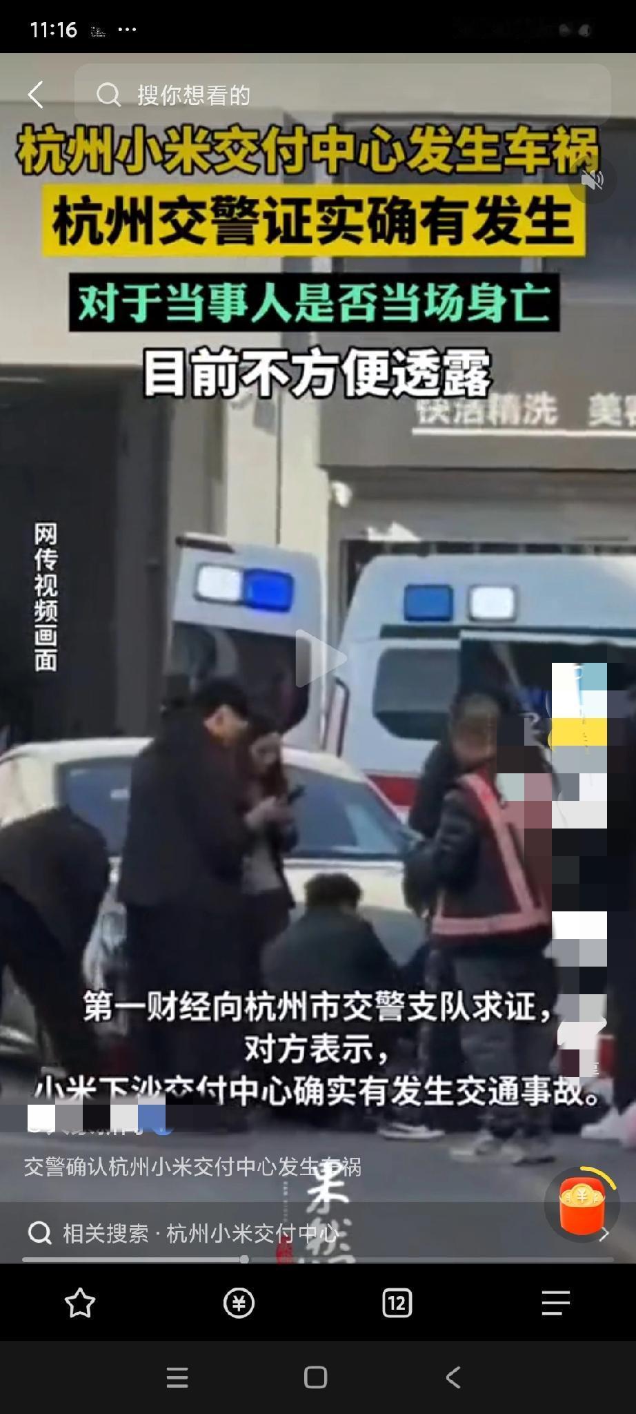 杭州小米交付中心突发车祸!提车首日竟酿悲剧,官方回应信息模糊引猜测 12月15日下午,杭州下沙小米交付中心炸锅了!网传一名刚提到小米新车的车主,在交付中心区域内不慎将一名中升销售撞倒,现场画面流出后,网友们都惊呆了! 咱就是说,交付中心那地方,本来应该是车主们开开心心提车的幸福地儿,车速也该是慢慢悠悠的,咋就突然出了这档子事呢?而且这车到底是小米哪款车也有点迷,网传是“小米max”,可小米现在主打的不一直是SU7吗?这车型说法的出入,让不少网友都犯了嘀咕,难不成是网友口误,还是小米藏着新车型没公布? 事故发生后,救护人员火速赶到,用担架把伤者送医了。可当大家最关心的伤亡情况被问及时,官方却表示“不方便透露”。这一下,各种猜测都冒出来了,是伤者情况太严重还在抢救,还是有其他复杂原因?这模糊的回应,可真是吊足了大家的胃口。 杭州交警倒是很快出来证实了事故确实发生,可关于事故责任、车辆状况这些大家关心的细节,却都没多说。这事儿啊,不仅让关注小米汽车的网友们揪心,也给所有车企提了个醒,交付中心的安全管理可千万不能掉以轻心,咱车主提车时也得打起十二分精神呐!希望伤者能平安无事,也期待官方能尽快给出更详细的回应,好让大家心里的石头能落下来。
