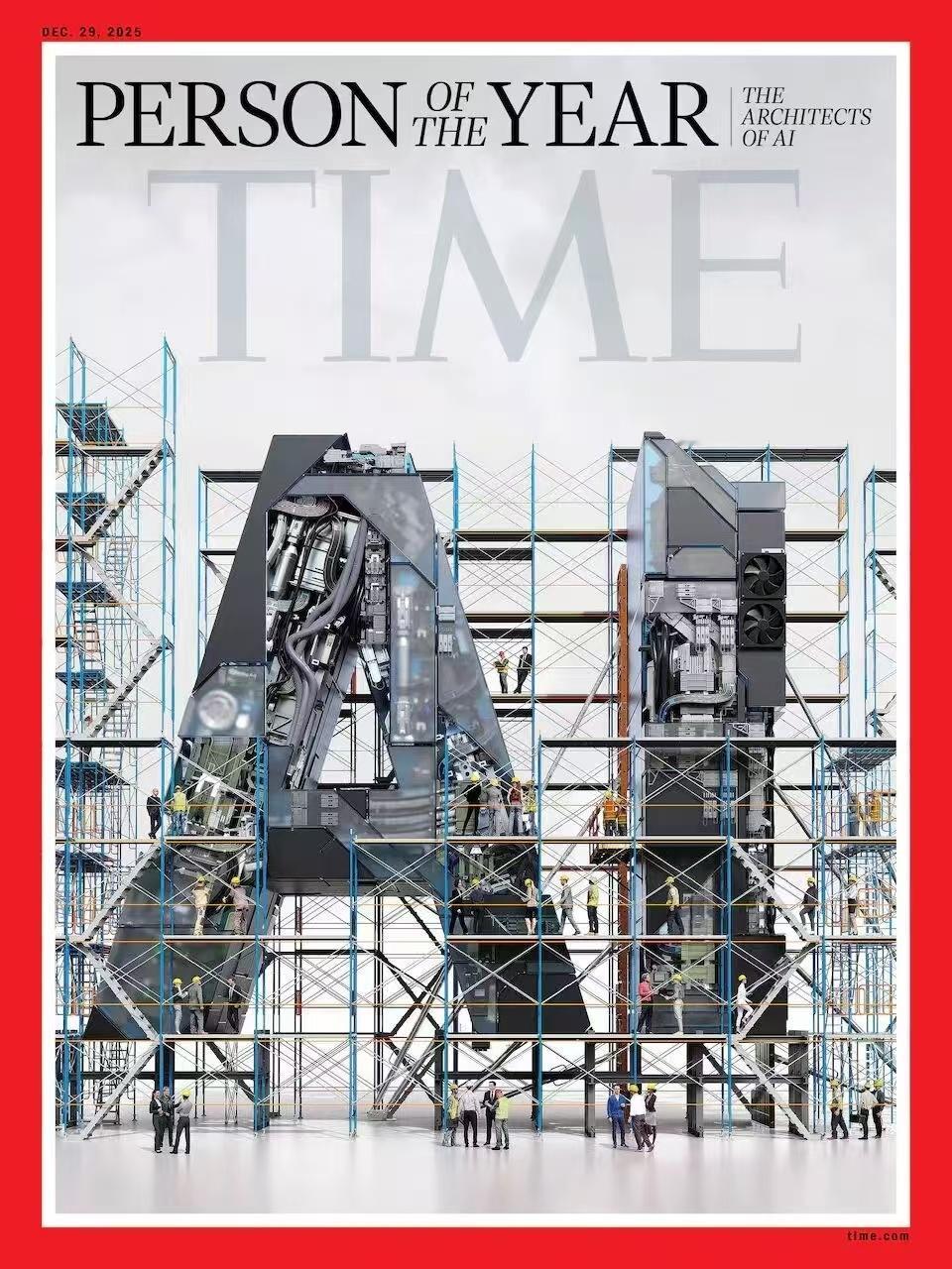 《时代周刊》2025年年度人物的两张重磅封面,一张是AI相关的机械与脚手架画面,另一张是8位人物坐在高空钢梁上的场景,配文“时代周刊重磅封面:8位AI巨头3位华人,普通人的船票在哪里?”,并强调这张照片是2025年最令人脊背发凉却又不得不看的内容。 封面的隐喻与历史对比: 指出该封面是对1932年著名的“摩天大楼顶上的午餐”黑白照片的致敬,但这并非单纯致敬,而是“一封写给旧时代的分手信”,预示着你我未来十年的命运。 回溯1932年,大萧条阴霾笼罩全球,11名普通建筑工人悬坐在纽约洛克菲勒中心69层的钢梁上,脚下是260米深渊,他们手持廉价午餐,无任何保护措施,是人类的血肉之躯搭建起现代文明的钢铁脊梁。 时间来到2025年,同样的钢梁上,坐着的不再是满身尘土的无名工人,而是足以撼动地球的8位科技巨头,这是当今世界的权力版图。 8位AI巨头;黄仁勋(NVIDIA CEO):炼化算力石油,其公司设计的AI芯片占据超90%市场。 苏姿风(AMD CEO):重塑硬件江山。 埃隆·马斯克(xAI、特斯拉CEO):突破碳基极限,其公司特斯拉在车辆和数据中心部署数百万AI芯片。 马克·扎克伯格(Meta CEO):定义数字疆土,Meta在其Llama AI模型系列上投入数十亿美元。 萨姆·奥尔特曼(OpenAI CEO):重写文明代码,OpenAI估值超5000亿美元,ChatGPT是史上增长最快的消费应用。 达里奥·阿莫迪(AnthROPIC CEO):筑起安全高墙。 德米斯·哈萨比斯(谷歌DeepMind AI实验室CEO):穷尽科学边疆,其公司著名AI模型是Gemini。 李飞飞(斯坦福AI研究院联合主任):点亮机器慧眼,被誉为“AI教母”,创建了AI图像识别系统。 时代变革与普通人的困境。1932年人类通过征服钢铁和水泥构建物理世界的骨架,2025年这群AI架构师通过征服算力和数据构建人类灵魂的脚手架。扎心的是,登上钢梁的“门票”已从劳动者的汗水,变成了科技巨头的技术与资本。原来的11位建设者被挤到画框之外,暗示在AI构筑的新世界里,靠纯体力和重复性脑力换取生存空间的时代正在加速落幕,话语权从干活的人彻底转移到制定规则的人手中。这根钢梁既是王座,也是诺亚方舟,上面坐着掌握未来钥匙的领航员,而钢梁之下是云雾缭绕的未知世界,那里站着迷茫的众生,我们正站在人类历史最剧烈的转折点上。 在8位年度人物中,有3位华人面孔(黄仁勋、苏姿风、李飞飞),这不仅代表了东方智慧在未来版图中的崛起,更值得每一个国人深思。最后呼吁观众关注在巨变的时代不做看客,做一个清醒的幸存者。