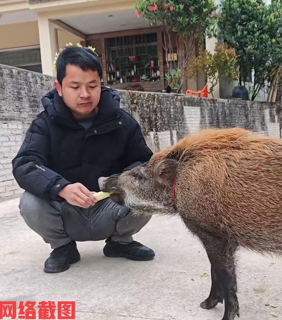 广州有小区内男子饲养了野猪。 这也是男子与野猪的一面之缘,当初无意的收养,让这