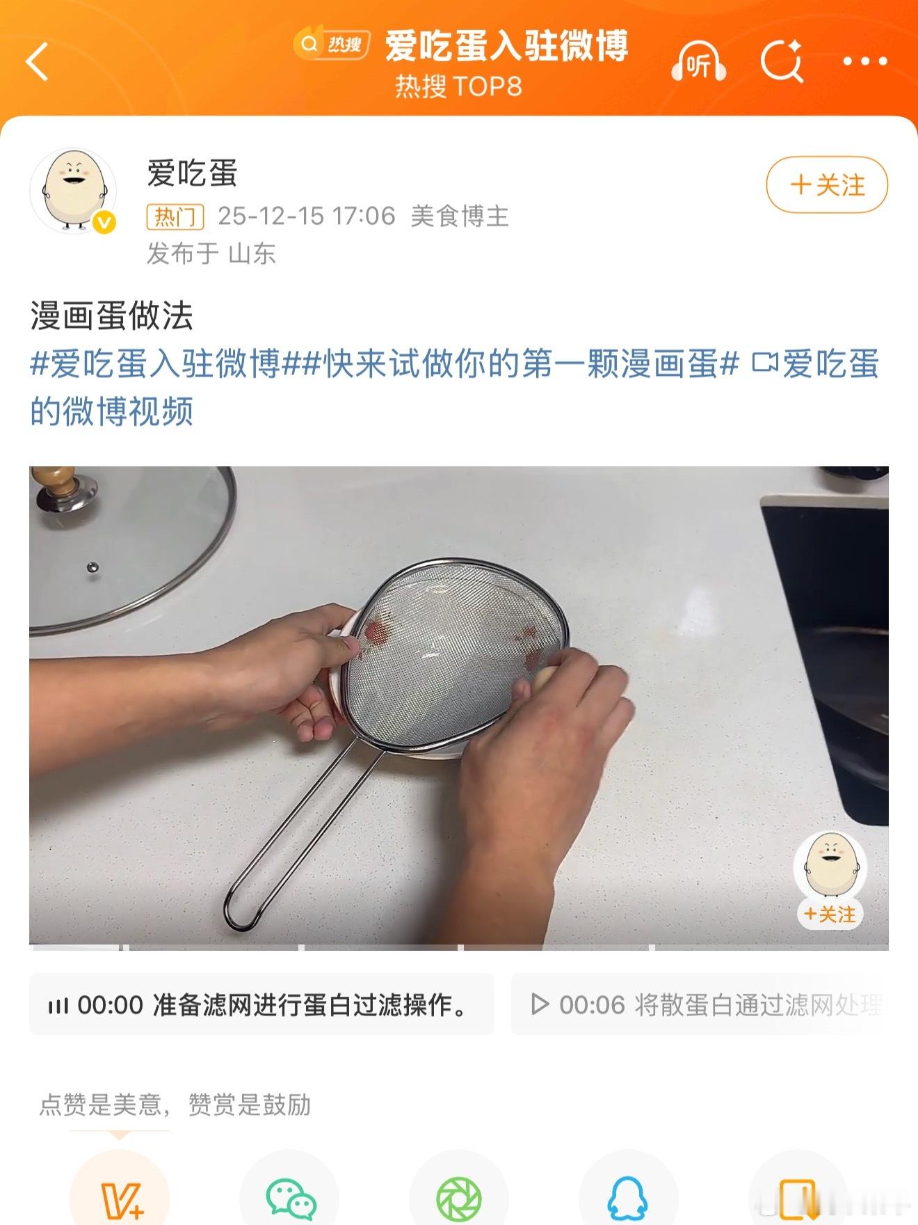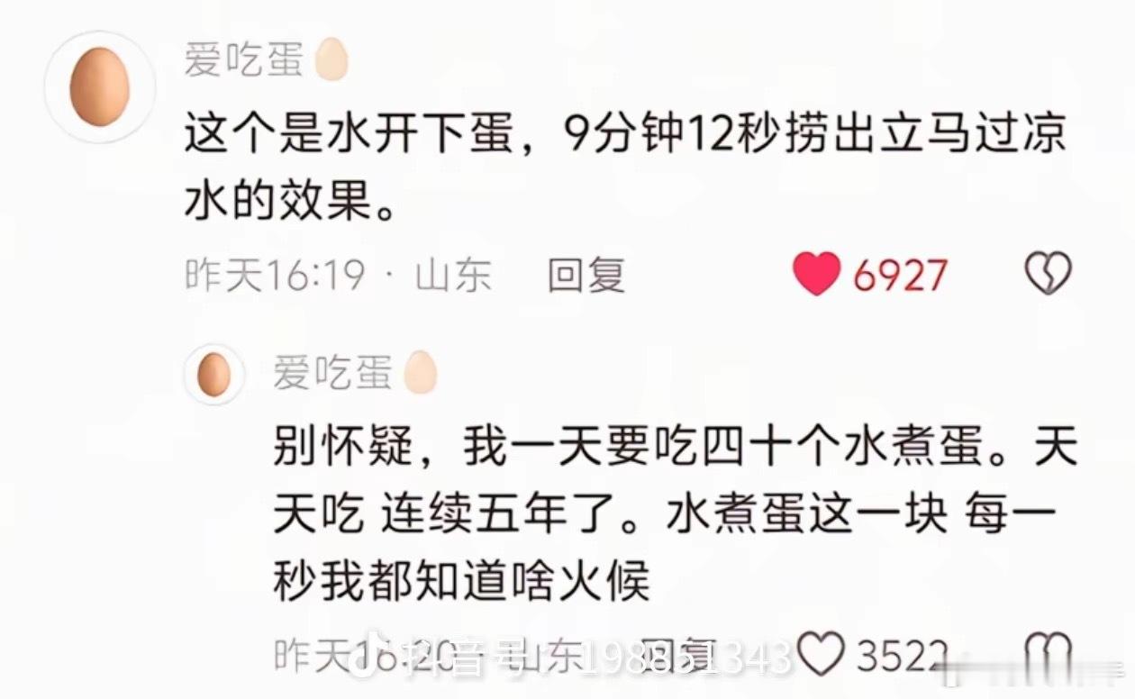 爱吃蛋入驻微博是闻会军,是俞文亮,是鸡排哥,是蛋神当我觉得抖音微博各赛道都饱和的时候,蛋神就这样横空出世了……我妈很早就给我说煮个五分钟,焖一会儿 就是溏心蛋他就这么发个时间在网上就火了只能参见鸡蛋大王,大王万蛋万蛋万万蛋。图3 是我煮的鸡蛋……