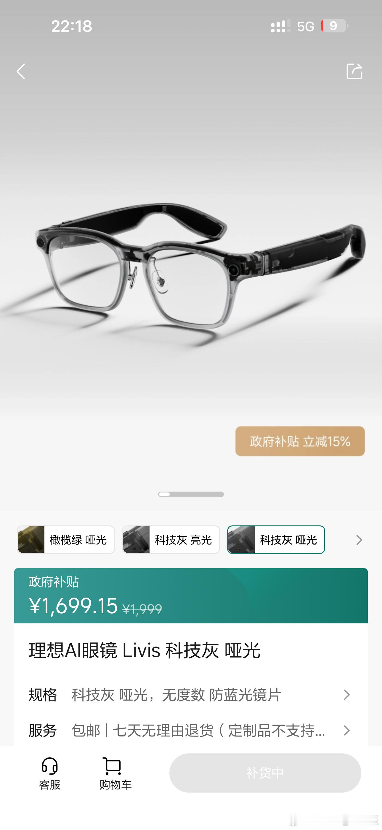 准备入手一个理想livis眼镜体验一下还没等我打开理想APP老婆已经在闲鱼给我淘了一个1599省了几百块✌️持家有道!开心…结果遇到的是钓鱼卖家说是要原价+200~后来还得乖乖的在理想APP下单正好APP还有4000多积分但准备下单,结果断货无法下单了…我知道发布时就售罄了…只是不知道也不能先下单慢慢等…所以只能等大家玩腻了,我再体验…我对Ai眼镜一直很期待但我对舒适性要求高,不想太重理想Livis很轻仅36克,对我很有吸引力而且能听歌、喊理想同学、拍照录视频随口即可问、所见即可问不用掏手机这个很爽1999说实话价格不贵,值得体验~作为老L9、MEGA车主对于理想同学语音交互还是非常认可的!特来哥理想ai眼镜livis