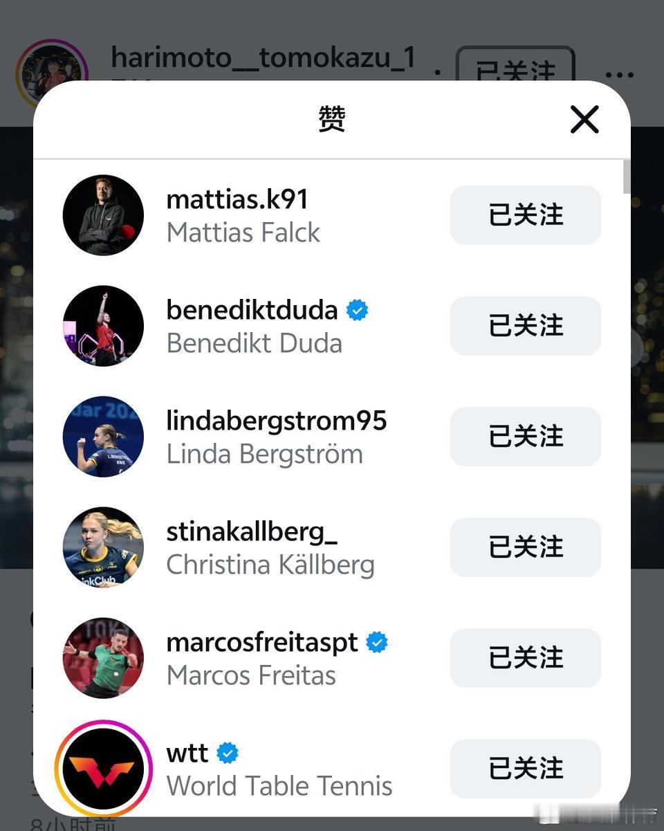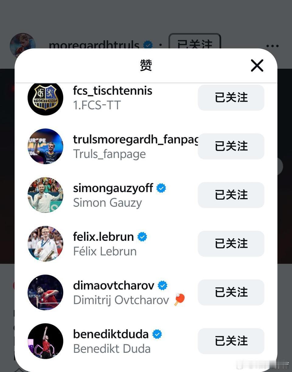 莫雷加德在瑞典乒协的处境很不妙啊,基本同时间发的总决赛Ins,给对手点赞都不愿意给队友点,之前队友还在瑞乒协评论区亲自下场阴阳小莫不来混团。我说实话,就1:8克罗地亚的实力,两个谁来了来了都救不了,自己菜就算了还天天排挤人😅