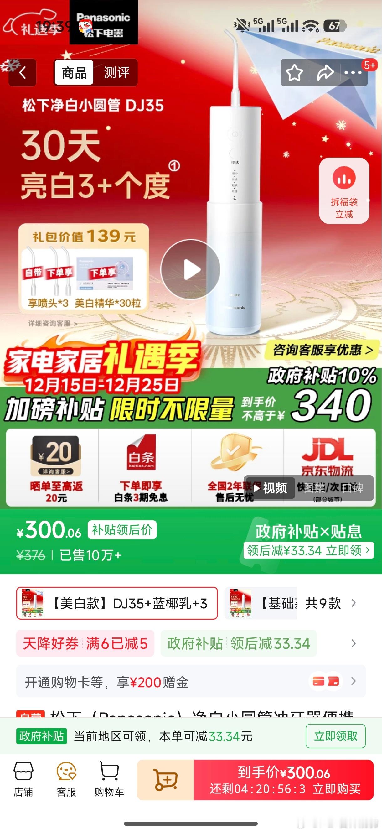 感谢送的礼物【松下冲牙器EW-DJ35】我家有一个三甲医院私人口腔医生,不太能用到,抽给粉丝吧点赞 抽奖详情