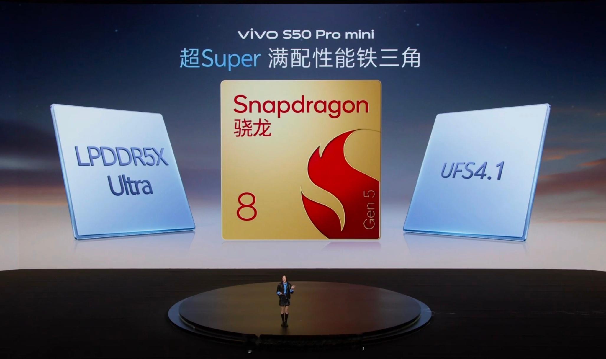vivo S50 Pro mini的核心参数配置:6.31寸屏幕五代骁龙8处理器,性能跑分331万,有史以来性能最强的vivo S系列6500大电池,支持40W无线充电IMX882潜望长焦,IMX 921主摄,上了VCS,全焦段变焦闪光灯,CIPA 4.5防抖在S50live的玩法上,多了夜景livevivo S50 Pro mini