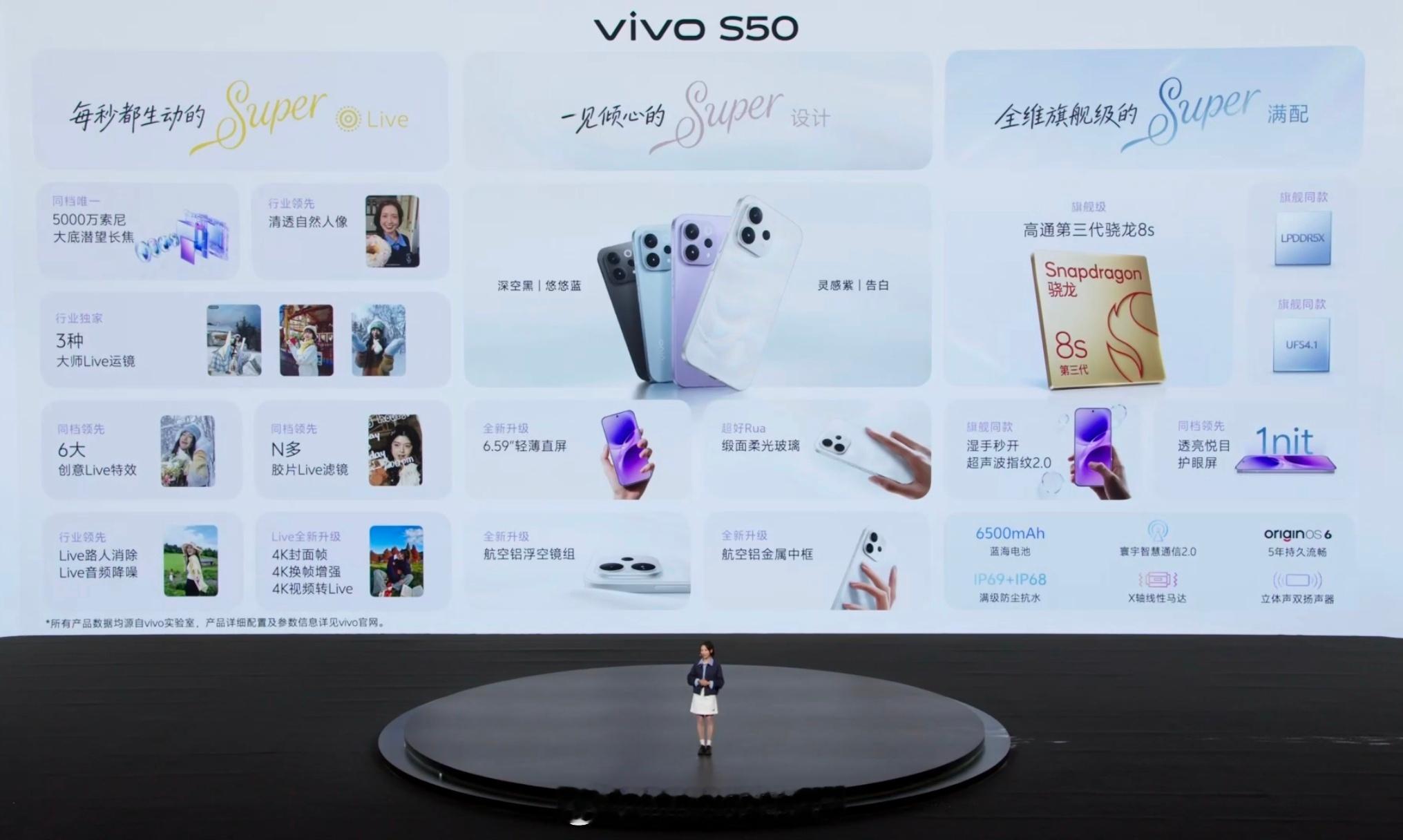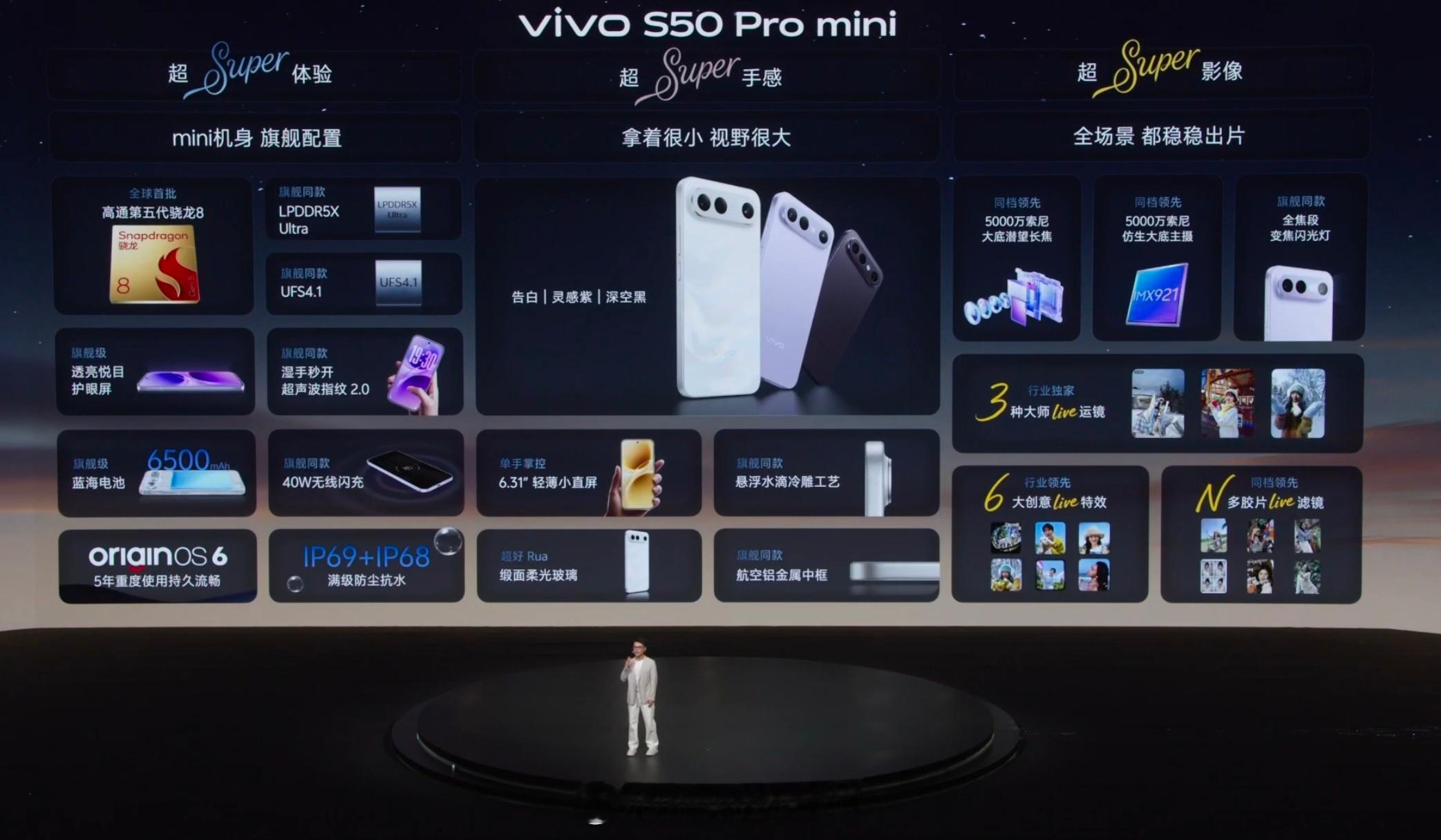 vivo S50系列价格来了,分别2999、3699起,怎么样?今年各家这个系列,基本都往上提价了。S50:2999起6.59寸,三代骁龙8,性能跑分200万,IMX882潜望长焦,6500电池+90W超级快充S50 Pro mini:3699起6.31寸,五代骁龙8,性能跑分331万,IMX921主摄,变焦闪光灯,40W无线充电 vivo发布会