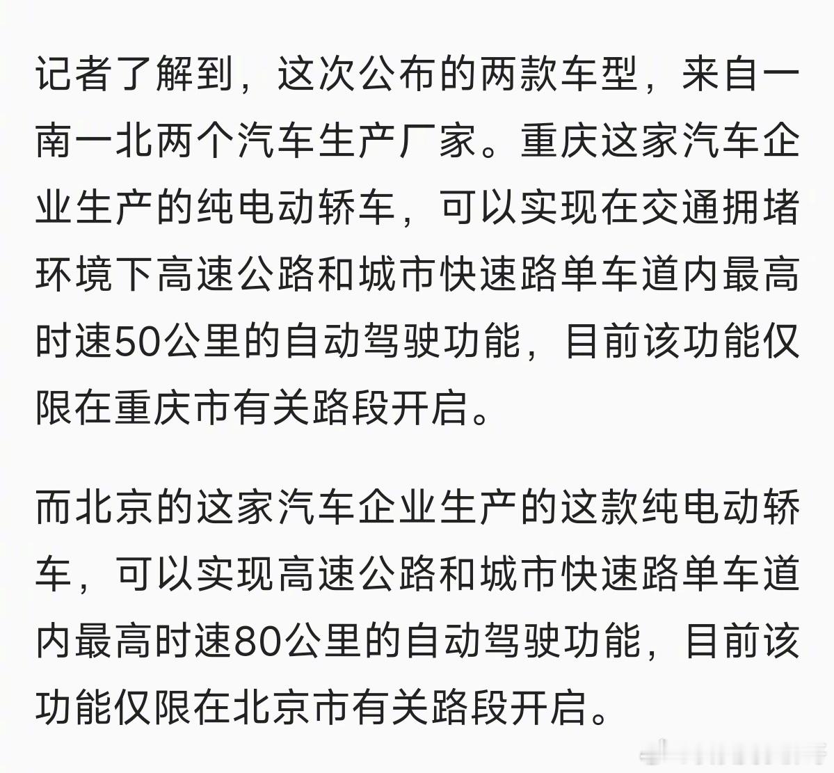 我觉得沸腾之前好好看看具体政策和智驾方案限定区域,限定时速,商业公司运营,这不典型的萝卜快跑吗?甚至还不如萝卜快跑(L4)长安的智驾都入了 L3 (地平线芯片),很明显现在的 比亚迪 小米 小鹏 理想 技术都已经超标 L3 了无非是没有经历去搞一个出租车公司…不用别家方案也很简单,都是车企怎么会用竞争对手的方案?只能自研和供应链啊