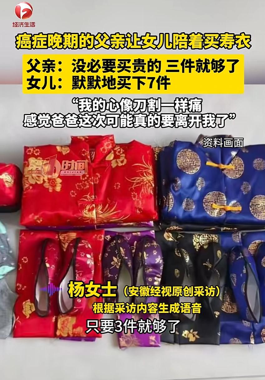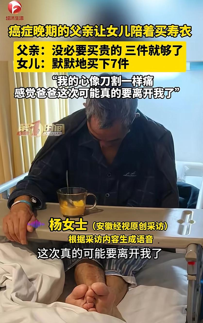 女儿陪肝癌父亲买寿衣,父亲:三件就够了!女儿默默买了七件… 刚看到这个消息,眼泪