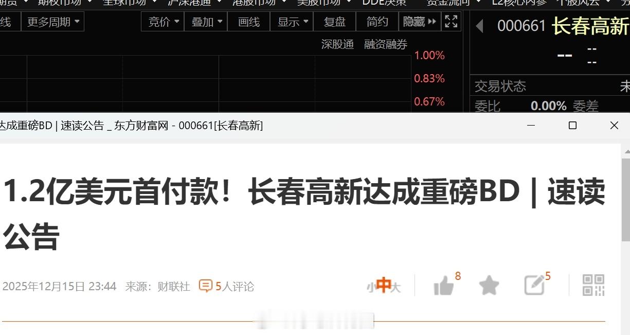 长春高新今天能否来个涨停板?毕竟后续能拿到13.65亿美元,能占2024年全年业