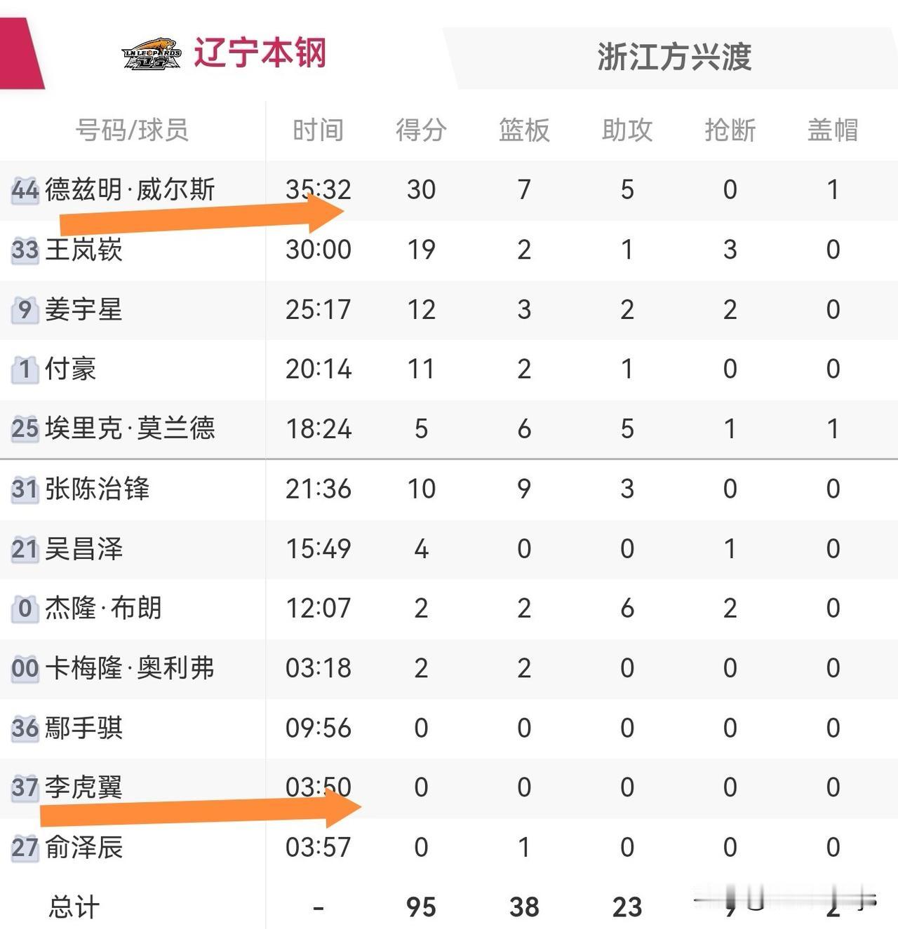 北京时间12月15日,CBA常规赛第二轮,浙江广厦客场挑战辽宁本钢。最终,广厦以79-95不敌辽宁,遭遇新赛季首败。这结果,意不意外?刺不刺激? 赛前,几乎没人会看好缺兵少将的辽宁队。球队账面实力远不如全员健康的广厦队,可比赛一开始,就注定了结局。 辽宁队的外援非常给力,威尔斯大杀四方,以一己之力撕碎对方防线,17中12砍下30分7板5助,是本场之星;本土球员也非常吸睛,王岚嵚三分神准,8中5,效率高,张陈治锋内线发威,姜宇星、付豪也不落下风。 反观,浙江广厦队本以为掌握了制约办法,结果这次被打得晕头转向,找不着北,比赛还剩两分多钟就换下了主力“投降”,让球迷很失望,这不是该有的态度。 辽宁队这场胜利相当提气,用冠军队当“试金石”,直接回应了外界质疑。 这场比赛,被球迷看好的李虎翼仅出战3分50秒,外援抢戏了,他就没戏了,着实让人心疼。 (图片素材来自网络)