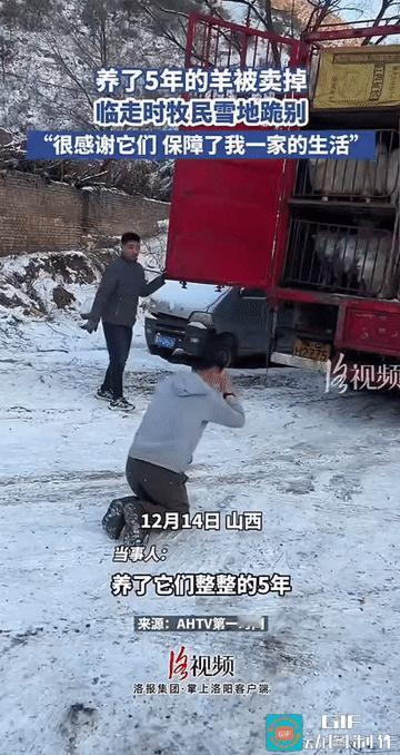 “这是真不舍啊!”山西忻州,雪后的牧场上,一位牧民在卡车启动的轰鸣声中,面对即将被拉走的羊群,在雪地里缓缓跪下,他深深地看着这些陪伴了自己五年的生命,不愿起身! 此时,卡车引擎的轰鸣、羊群不安的叫声、雪地里的风声,都被他抛在脑后,只剩下一句沉甸甸的心里话:“感谢它们保障了我一家人的生活。” 来源:【掌上洛阳】 “养了整整5年,几乎是它们每天陪伴着自己。” 清晨的露水,午后的阳光,黄昏的牧归。五年里,上千个日夜,这些羊早已不是简单的牲畜,而是沉默的伙伴! 它们的成长见证着主人的岁月,它们的数量维系着家庭的生计! 当村里没有草场可以放羊的现实摆在面前,再多的不舍也必须向生存让步。卖掉一部分羊,是迫不得已的选择,是环境变化与资源紧缩下的艰难妥协! 牧民跪别羊群的画面,刺痛了许多人的心。这份深情背后,是传统畜牧生活与现代环境压力碰撞的真实缩影! 气候变化带来的冲击,放牧资源的限制,让草原上“畜牧人”的身份正逐渐变得脆弱! 在山西这样的地区,羊群不仅仅是财产,更是一家人生活的保障。每一只羊的成长,都承载着一家老小的期望! 山西忻州河曲县的“柏籽羊”远近闻名。这些羊在自然环境中生长,羊肉品质优良,是当地牧民的重要经济来源! 而卡车最终也消失在雪地的尽头。牧民缓缓站起身,拍了拍膝盖上的雪,转身走向自己的房屋! 雪地上只留下两行深深的脚印——一行是羊群离开的足迹,一行是主人送别时行走的痕迹。这个冬天格外寒冷,但生活仍将继续! 屋子里或许有需要抚养的孩子,有待赡养的老人,有下一季的生产资料需要准备。他的肩上扛着一个家庭的重量,这份责任让他必须坚强!