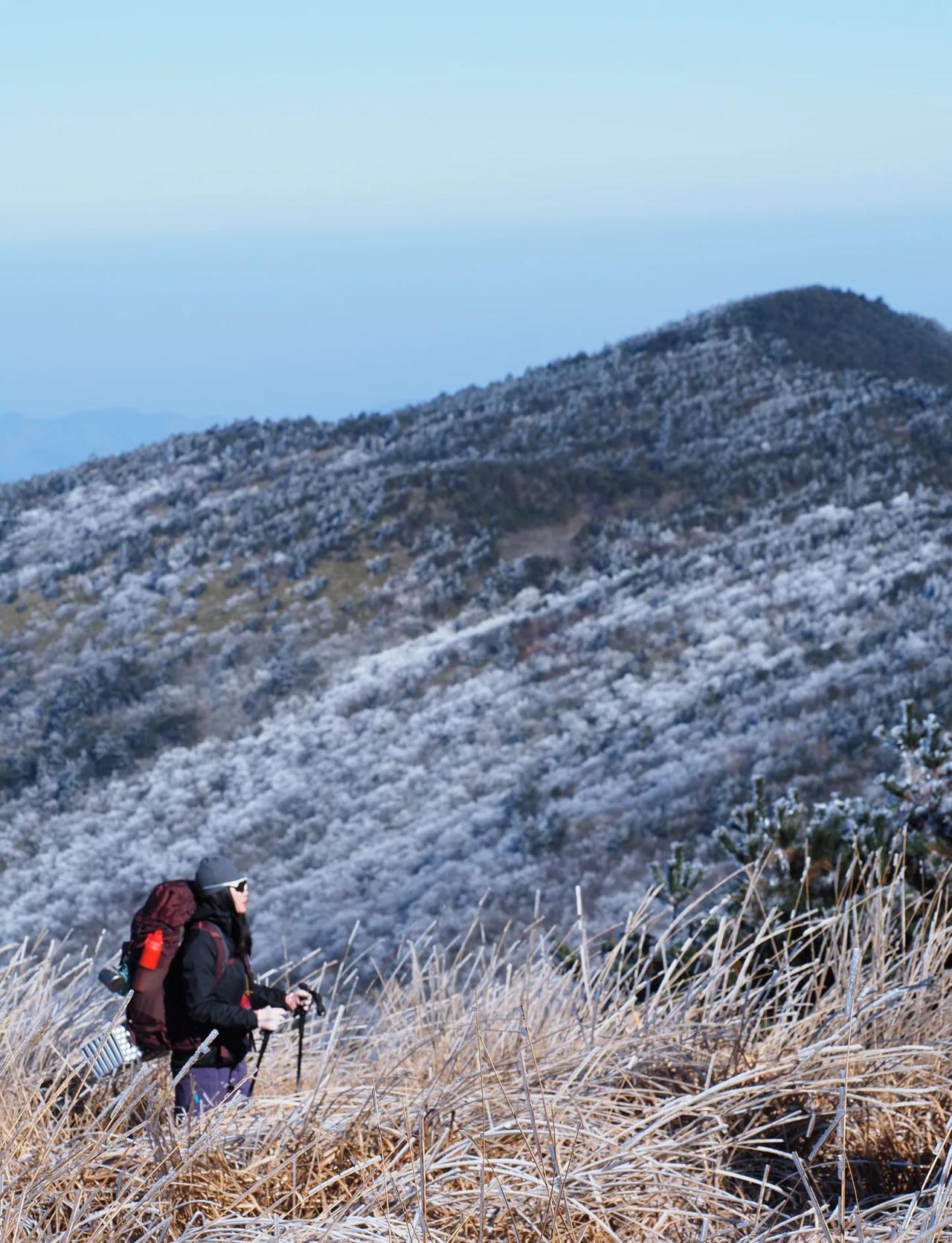 雾凇|云海|星空|日出 零下10度⛺️初体验! 北方小土豆也是看到雾凇啦❗️❗️❗️ 周末和朋友走的百丈岭穿童公尖环线 📍:杭州市临安区百丈古道 🚗:江苏出发约2-3h ⏱️ :两步路🔍“百丈岭穿童公尖环线” 路线约15km,累计爬升1100m 🏕️:扎营点可以选择百丈岭客栈/花岩石 (后者人很少,两天行程体力分布更均匀) 🍫:唯一补给点【百丈岭驿站】有泡面/水/🚾 💡冬日看雾凇小Tips: ✅提前查看好天气app!别空跑了 ✅山顶风大,一定要带羽绒服➕防风保暖的手套 ✅最好带上冰爪/雪套,以防路面结冰❄️ ✅百丈岭/龙王山/桐杭岗,这种看雾凇的大热门地方,一定要早点出发,不然路上会超级堵车! 赴一场冬日的冰雪之约 冬季徒步计划 走进冬日山野 冬季户外徒步