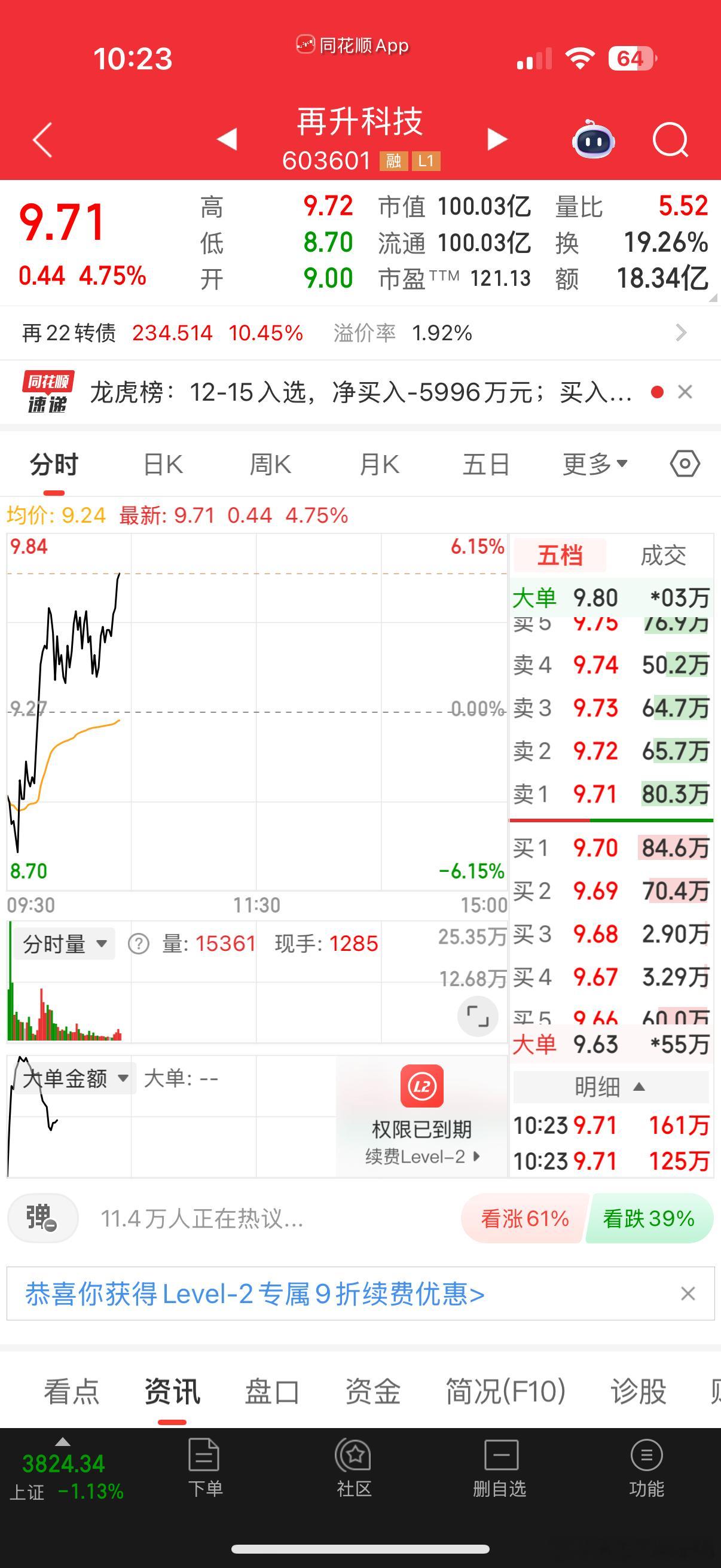 $再升科技 sh603601$ 很多人昨天没有看懂我这波操作,短线的精髓就是看资金流向,动作大小,时间长短,看懂一个就游刃有余