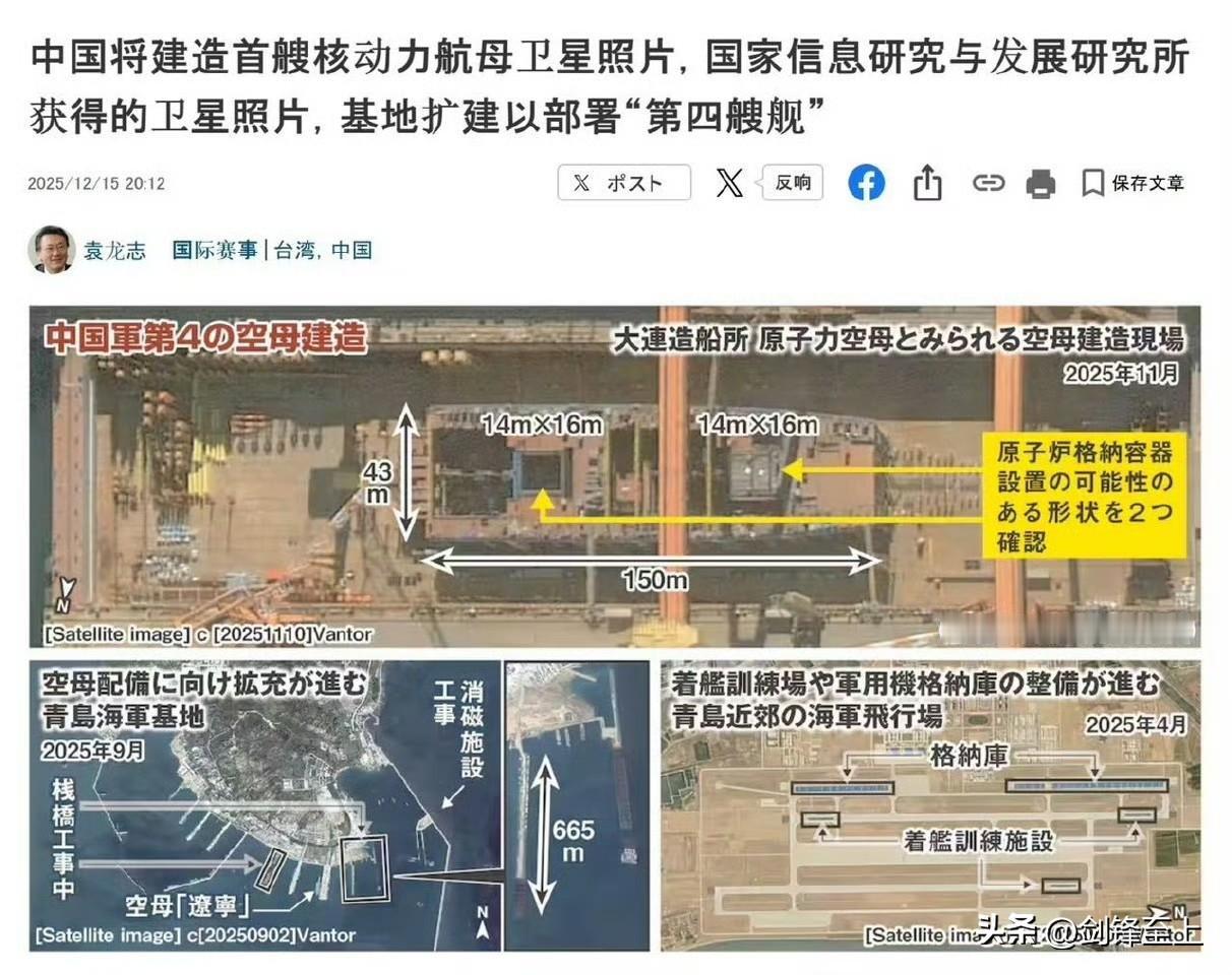 日媒这次确认了,中国正在建的第四艘航母就是核动力航母尺寸比福特级更大,动力舱段150米长,吃水线宽43米双核反应堆动力,屏蔽箱尺寸14×16米,当之无愧的世界第一强,第一大航母不得不说,小日子对我们的研究确实很细,一张简单的卫星图片,他们几乎穷尽了所有手段,分析出了具体的数据但是怎么说呢,在绝对的实力面前,一切阴谋诡计都是徒然
