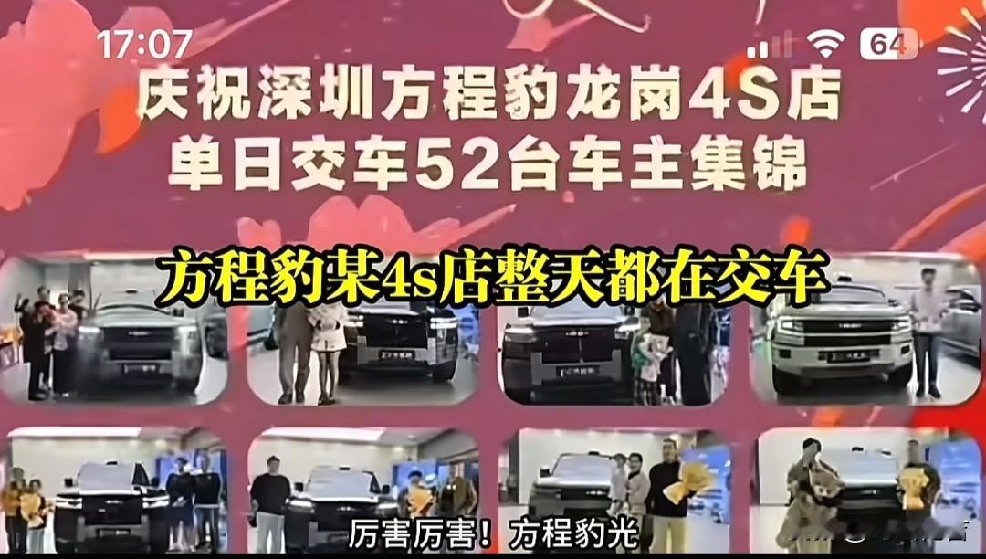 方程豹钛7,上市以来,持续热销,连续两个月销量两万台。方程豹钛7日发运量两千台车,某方程豹4S店一整天都在交车,一天之内交付了52台车,真厉害呀。方程豹钛7究竟有什么魔力呢!我觉得钛7这款车很个性化,外观好看,内饰豪华,超长纯电续航。车型大,既能城市出行,又能轻度越野。开上它,既有面子又有里子。