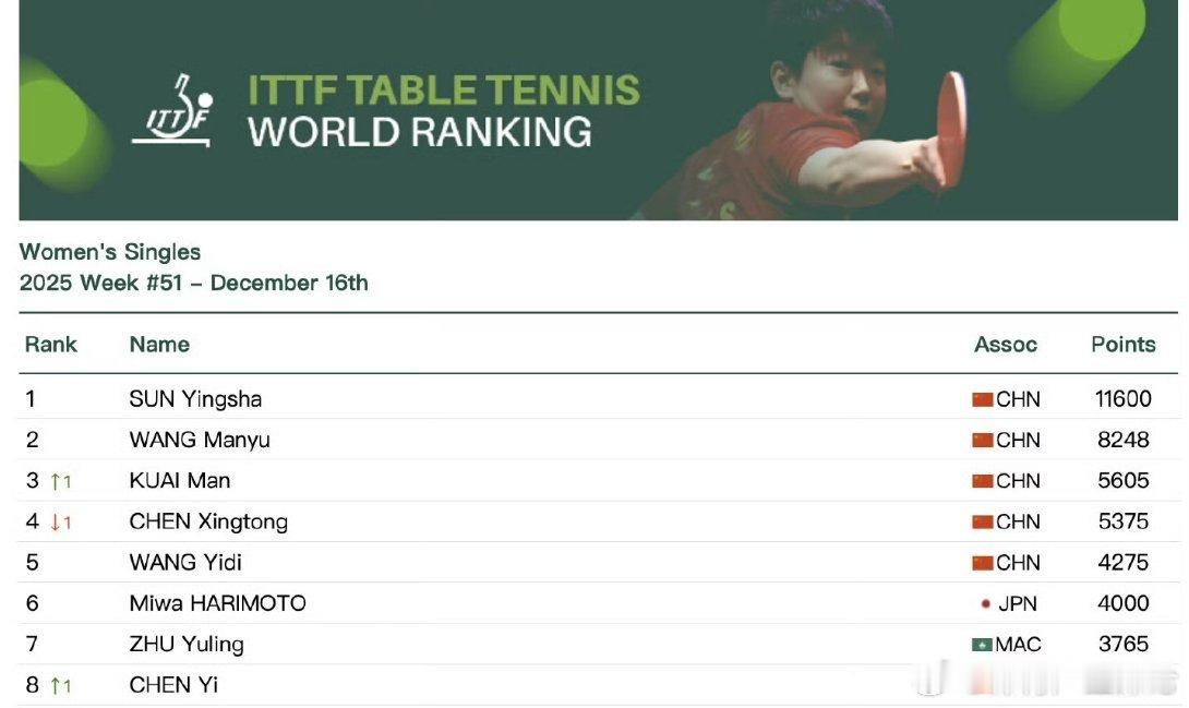 蒯曼升至女单世界第三这应该是蒯曼职业生涯首次闯进世排前三?