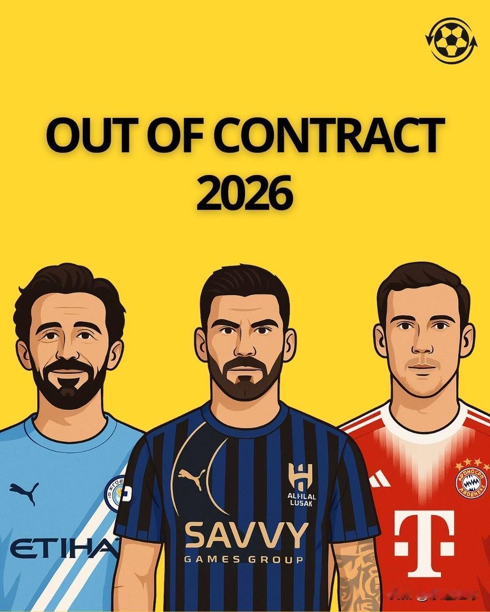 最新更新:2026年合同到期的球员名单: 🔸 乌帕梅卡诺(拜仁慕尼黑) 🔸 马克·格伊(水晶宫) 🔸 科纳特(利物浦) 🔸 弗拉霍维奇(尤文图斯) 🔸 贝尔纳多·席尔瓦(曼城) 🔸 迈尼昂(AC米兰) 🔸 朱利安·布兰特(多特蒙德) 🔸 鲁本·内维斯(利雅得新月) 🔸 维塔利·米科连科(埃弗顿) 🔸 昆滕·廷贝尔(费耶诺德) 🔸 戈雷茨卡(拜仁慕尼黑) 🔸 格纳布里(拜仁慕尼黑) 🔸 韦斯顿·麦肯尼(尤文图斯) 🔸 马克斯·塞内西(伯恩茅斯) 🔸 哈里·威尔逊(富勒姆) 🔸 瑞安·塞塞尼翁(富勒姆) 🔸 约翰·斯通斯(曼城) 🔸 维塔利·亚内尔特(布伦特福德) 🔸 奥斯卡·明格萨(塞尔塔) 🔸 法比尼奥(吉达联合) 🔸 里科·亨利(布伦特福德) 🔸 比苏马(热刺) 🔸 埃尔卡鲁阿尼(乌得勒支) 🔸 弗兰克·凯西(利雅得胜利) 🔸 安东尼奥·吕迪格(皇家马德里) 🔸 安德鲁·罗伯逊(利物浦) 🔸 罗兰多·曼德拉戈拉(佛罗伦萨) 🔸 马蒂亚斯·延森(布伦特福德) 🔸 布巴卡里·苏马雷(莱斯特城) 🔸 镰田大地(水晶宫) 🔸 阿马杜·海达拉(RB莱比锡) 🔸 伊兰·梅利耶(利兹联) 🔸 布罗佐维奇(利雅得胜利) 🔸 哈里·马奎尔(曼联) 🔸 克里斯滕森(巴塞罗那) 🔸 马朗·萨尔(朗斯) 🔸 阿尼斯·梅赫梅蒂(布里斯托尔城) 🔸 莱万多夫斯基(巴塞罗那) (来源:@Transfermarkt)