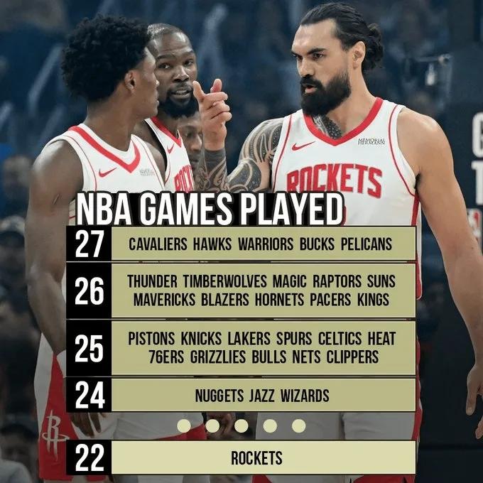 火箭未来54天,打29场比赛,6组背靠背! 赛季开始至今,火箭是全联盟赛程最轻松的球队,目前只打了22场比赛,而大部分球队都在24-25场,在12月之前,火箭甚至是0次背靠背,全联盟独一档。 但赛程最终会拉到同一水平线上,前面轻松,后面就艰难,接下来的2个月,直到全明星之前,火箭会是联盟赛程最密集的球队之一,开始给这帮人上强度了。 这期间,交易市场也开启了,火箭急缺的控球后卫就在池子里,看看密集的赛程里,能不能迎来一个指挥官。