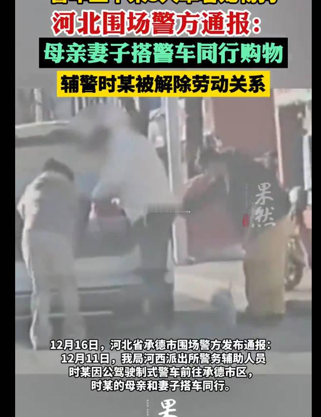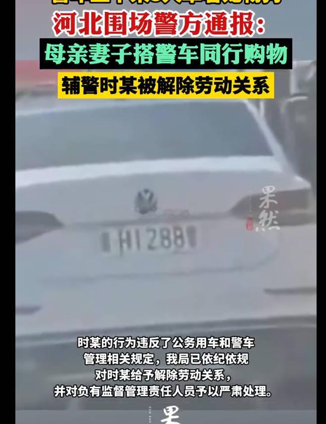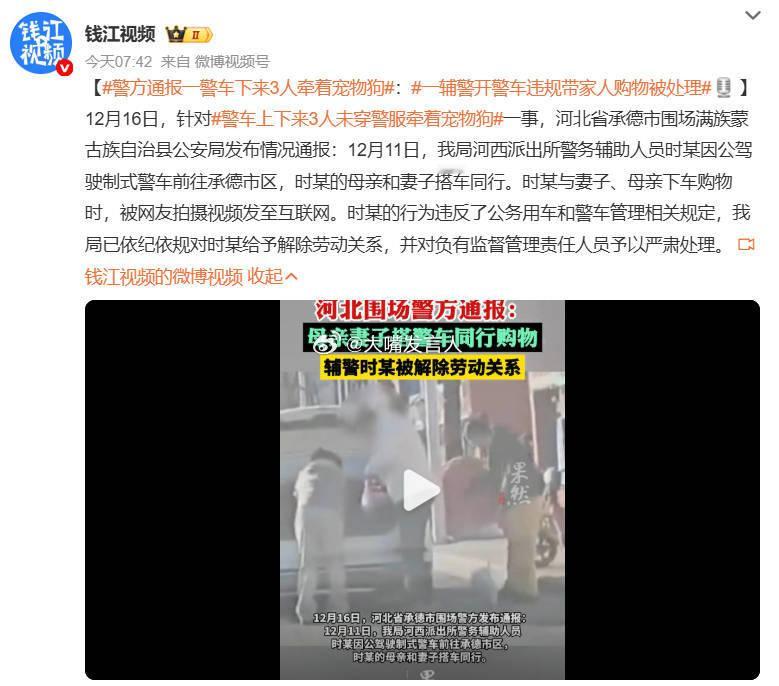 警方通报一警车下来3人牵着宠物狗 这类事在以前很普遍,只是时代变了,手机摄像头随时拍摄的时代,还敢公车私用、公器私用,坏事结果自己承担就是了,“时某与妻子、母亲下车购物~~我局已依纪依规对时某给予解除劳动关系” 印像中老家县城里很多单位,在十几年前的春节期间,不过正月十五十六,单位里是几乎没几个人正式上班的一辅警开警车违规带家人购物被处理,警车上下来3人未穿警服牵着宠物狗,热点观点,河北通报辅警开警车送家人购物