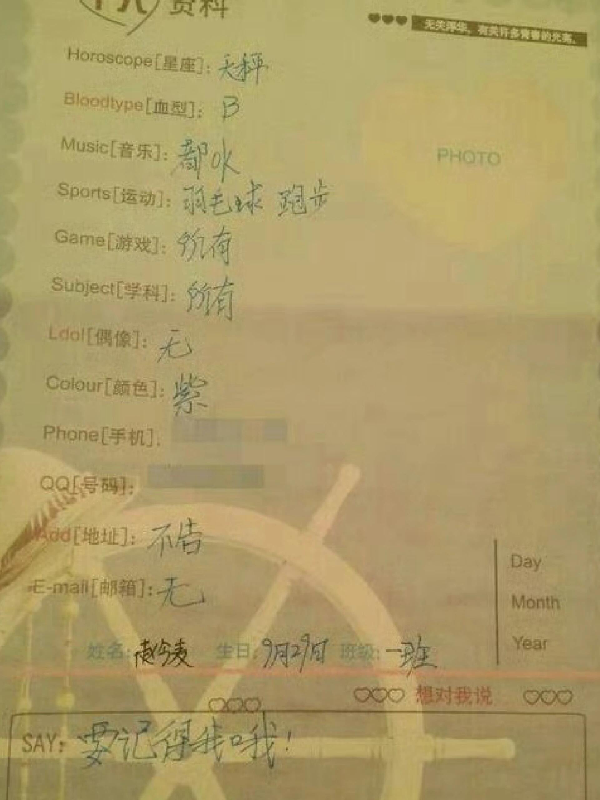 赵今麦小学的同学录和画赵今麦小学时候的同学录和画的画!原来麦麦从小就喜欢跑步,喜欢的颜色是紫色,现在还是吗?画的小女孩儿眼睛大大的,也太可爱了吧!好像看到了小小麦的样子!赵今麦小学的同学录