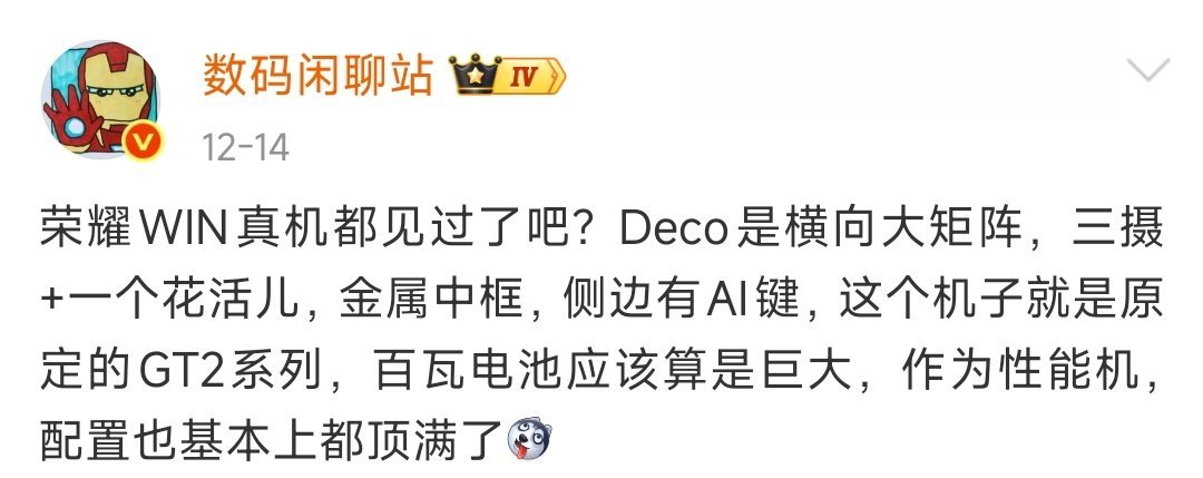 数码闲聊站 荣耀WIN系列官宣预热!听说这次堆料不少,后置横向矩阵Deco,侧边AI键,金属中框,百瓦电池+1万毫安大电池,还有主动散热风扇,期待一下!