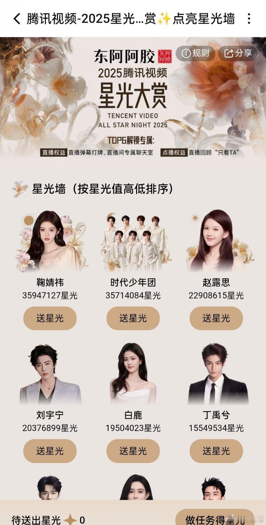星光大赏脱水排名腾讯星光大赏投票鞠婧祎位列第一,时代少年团七个人对打一个人是不是有点太不公平了?关键七个人还打不过鞠婧祎一个人,是不是有点说不过去了,