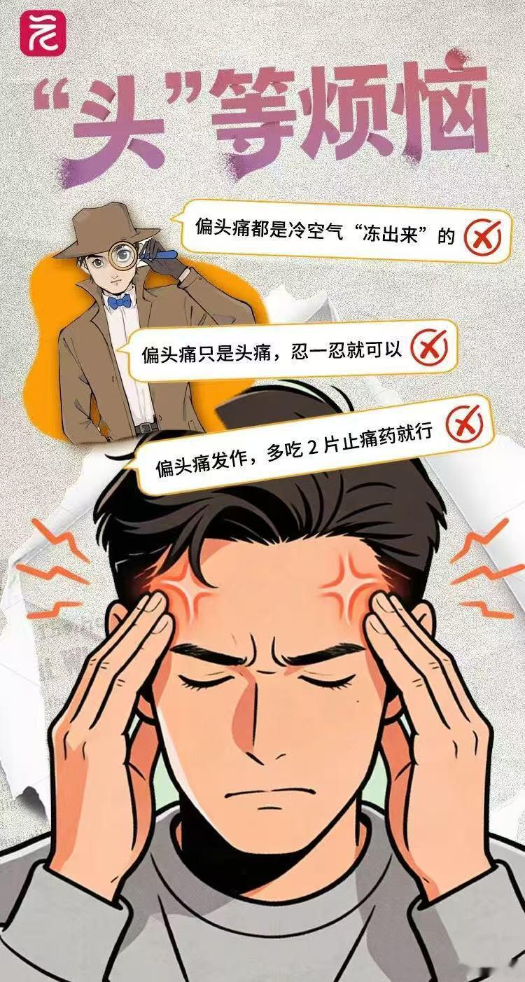偏头痛一个朋友,前天突然头痛,就是那种太阳穴一跳一跳地疼,甚至恶心想吐。他的第一反应,是感冒了。因为前一天吹了冷风。但检查下来,他没感冒,而是得了偏头痛。根据“人民日报健康客户端”,我国18~65岁人群,偏头痛年患病率为9.3%。按此估算,国内大概有1.3亿的偏头痛患者。在秋冬交替时节,偏头痛的发作频率可上升30%-50%。偏头痛可不是普通的“头疼脑热”,它是一种正经的神经系统疾病。简单说,就是脑子的血管和神经,变得特别敏感,一旦受到刺激,血管就会不正常地收缩再扩张,像橡皮筋一样猛地拉扯到周围的神经,于是就引发了那种剧烈的、搏动性的疼痛。它常常偏爱脑袋的一侧,还会让人怕光、怕声音,难受得很。到了冬天,偏头痛特别爱出来捣乱,主要有几个原因。首先,温差太大了,屋里暖和屋外冷,一进一出,血管跟着温度一会儿收缩一会儿扩张,次数多了,敏感的神经就被刺激到了。其次,冷空气过境,气压高高低低变化频繁,这也会扰乱脑内的血流,容易引发头痛。还有一个容易被忽略的点,冬天晒太阳少了,大脑里血清素少了,随之褪黑素也会少。人的情绪会不稳定,对疼痛的忍耐力会下降。那么,作为普通老百姓,应该注意点什么呢?第一,防大于治,保暖。第二,积极寻找自己的“头痛开关”,可能是某类食物、熬夜或者压力大,以后尽量避开。第三,止痛药不能乱吃。疼起来就吃两片,时间长了可能变成“越吃越痛”。第四,如果每个月头痛超过四五天,那就别硬扛了,及时就医。第五,平时可以适当多吃点富含镁和维生素B2的食物,比如香蕉、坚果、深绿色蔬菜。找到自己的“头痛开关”1亿3000万偏头痛患者晏秋秋
