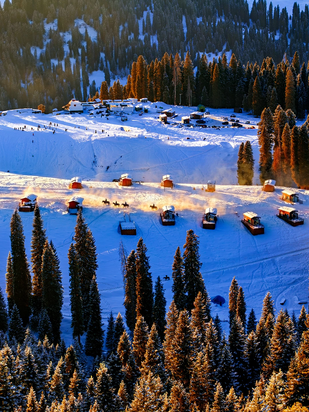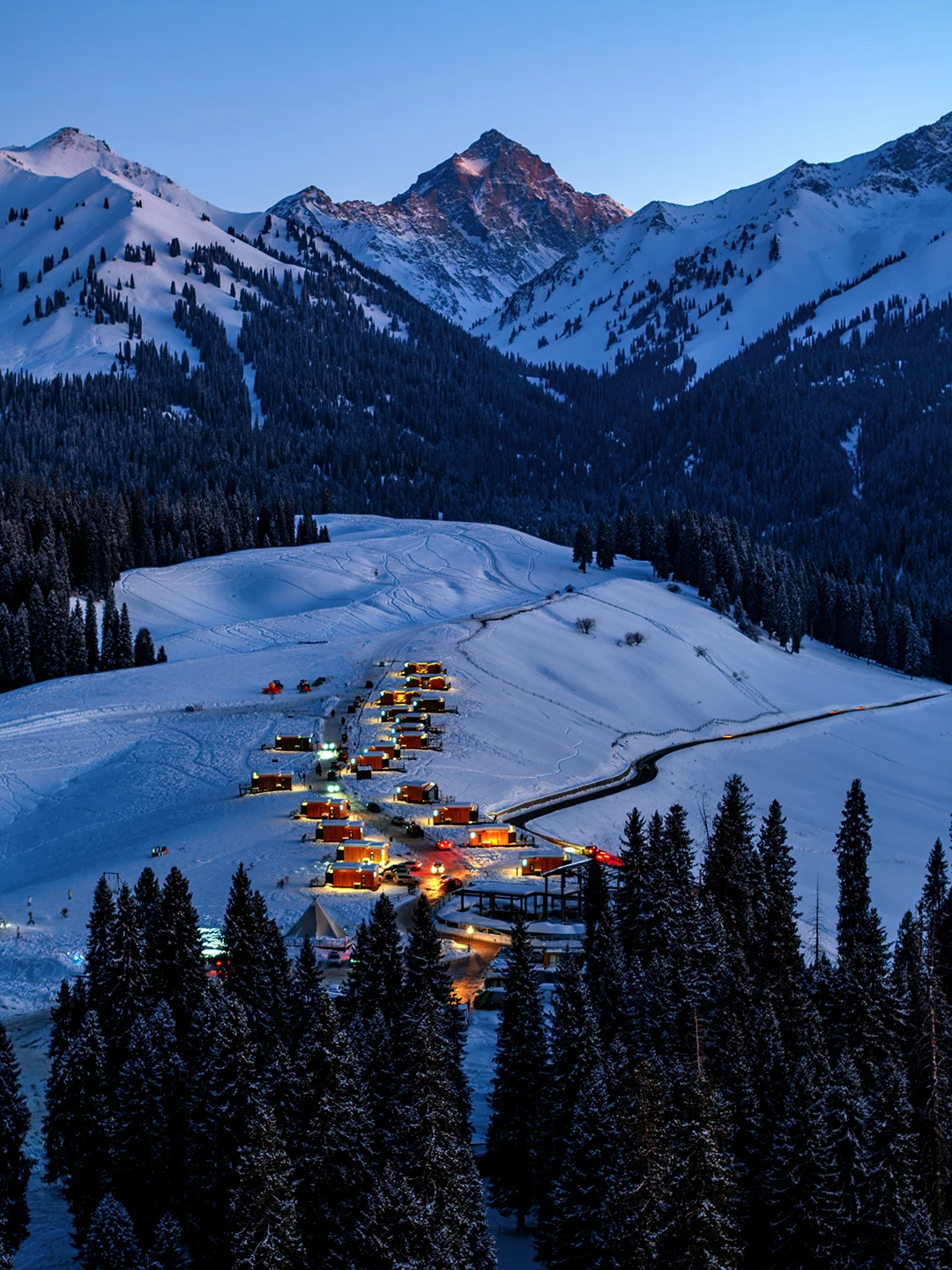 从摄影师的角度来说, 冬天的库尔德宁是我新疆行的不二之选! 趁着现在人还不多, 还没成为第二个禾木/喀纳斯。 冬日的库尔德宁,在广阔的雪林里,几乎是一幅漫开的素色幕布。雪岭云杉如静默的笔触。天地间唯有落雪的簌簌声。 如果时间允许,一定要在里面的营地住一晚。当暖黄色的灯火在雪山脚下亮起,你会恍然以为闯入了阿尔卑斯山麓的小镇。 这份冬日静谧感,是独属于库尔德宁的浪漫。