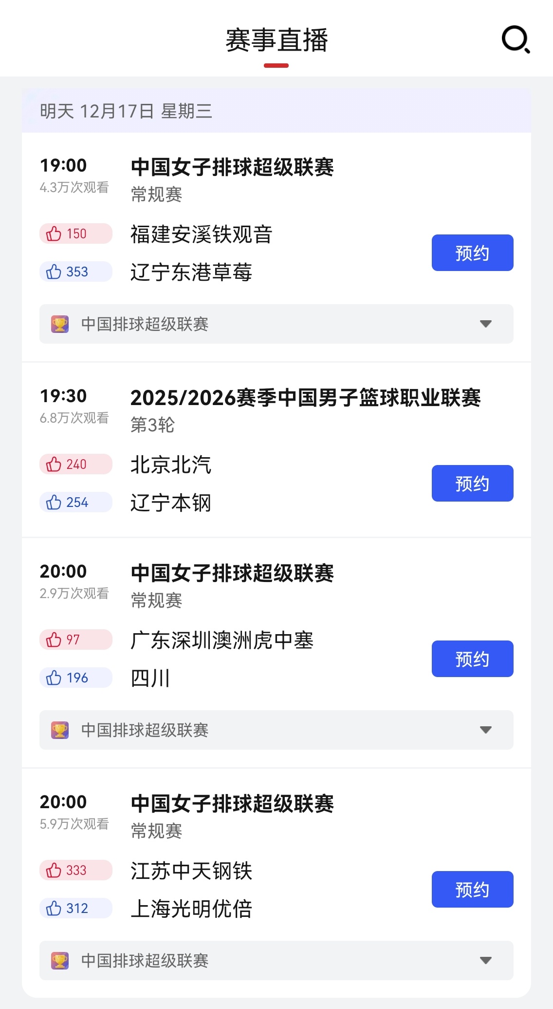 女排联赛第2️⃣轮赛事预告+比分预测2025-2026中国女排超级联赛 12月16日,周二19:00,河南女排🆚北京女排12月16日,周二20:00,山东女排🆚天津女排12月17日,周三19:00,福建女排🆚辽宁女排12月17日,周三20:00,江苏女排🆚上海女排【比分预测】中国女排1️⃣河南女排2-3北京女排2️⃣山东女排2-3天津女排3️⃣福建女排1-3辽宁女排(这场辽宁没有要回避的球员)4️⃣江苏女排2-3上海女排这一轮对阵都是第一轮赢球的对阵赢球的,输球的打输球的,所以还真有点难预测。希望不要一场都猜不对。