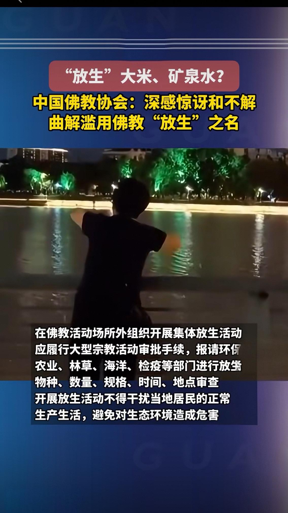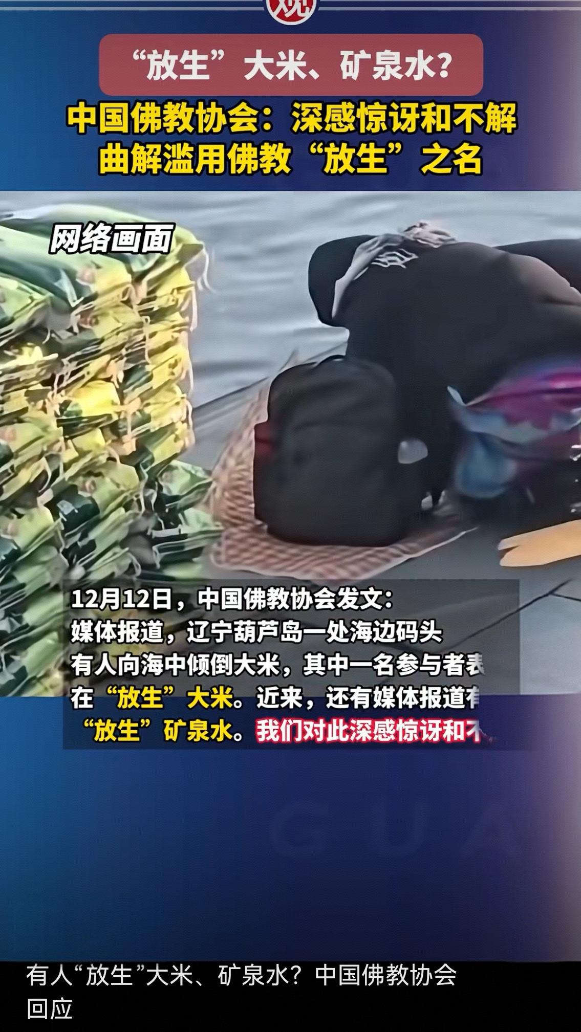 “放生”大米、矿泉水?别让伪善糟蹋了善意 12月12日,中国佛教协会发声,对