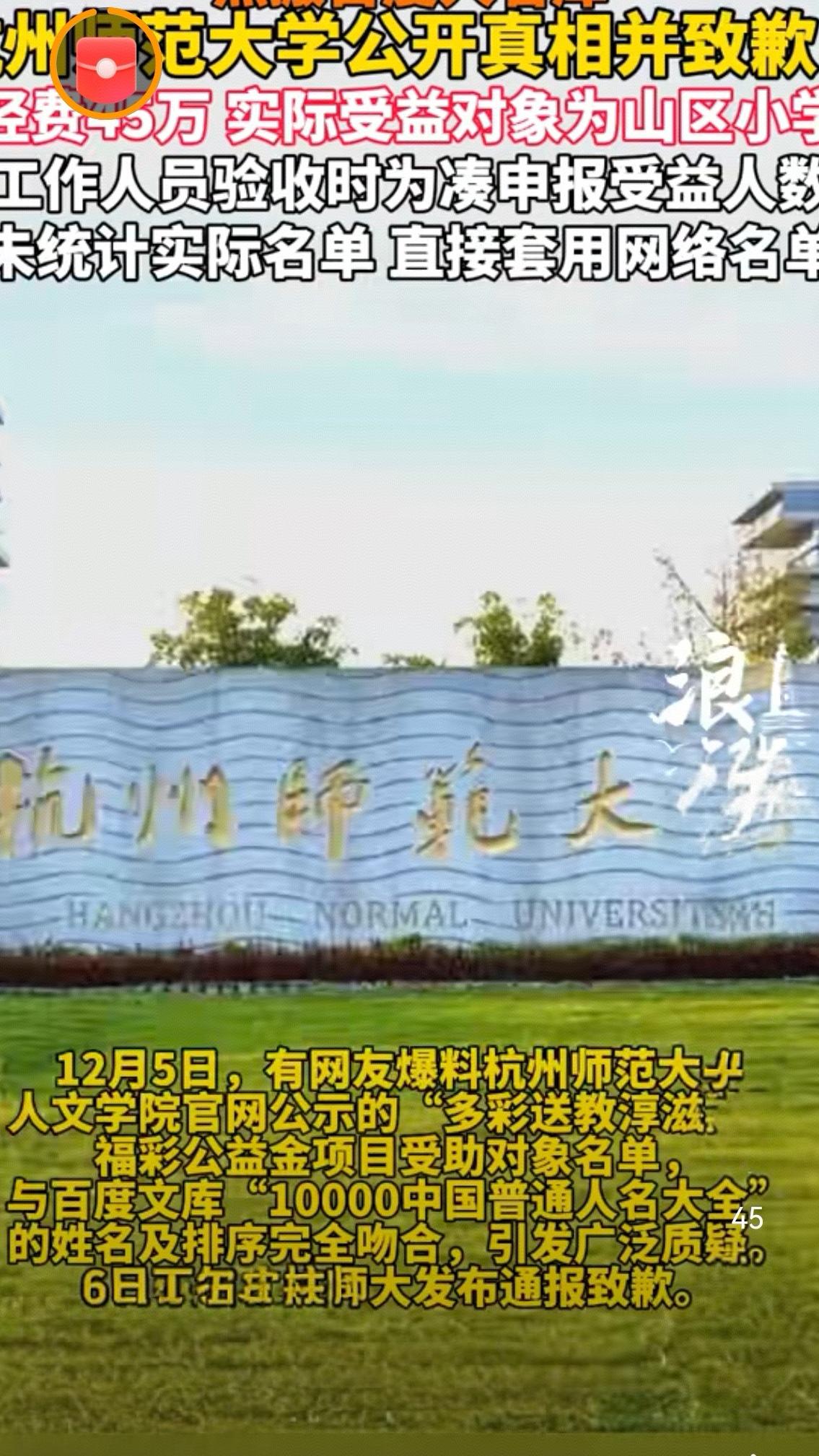 杭师大45万公益金风波:15万买3个书架?越洗越黑的背后,是对善意的践踏! 杭州师大越解释坑越大了!真是验了那句老话,说一个谎需要十个谎来圆!45万福彩公益金项目,先被扒出资助名单从百度文库复制粘贴,眼看纸包不住火,学校赶紧出来诚恳道歉,还晒出资金明细表想自证清白。可万万没想到,明细一公布,漏洞更大!学生资助名单照搬百度文库后杭师大再被质疑票据造假,三个书架竟然花了15万,哪个学生愿在一个"扯谎"的学校学习? 网友看到这个数字直接炸了锅:一个普通书架市场价几百上千顶天,就算是实木定制款,三个也绝不可能突破五位数,15万的报价简直离谱到像在抢钱!这张轻飘飘的票据,撕下的是公益项目的遮羞布,更是公众对高校公益的信任。 谁都知道,福彩公益金是无数普通人的爱心汇聚,每一分钱都该用在刀刃上——是给贫困学子买一套教辅书,是给图书馆添一批新桌椅,是给实验室补一套紧缺器材。可在这份明细表上,我们看不到雪中送炭的温暖,只看到敷衍潦草的糊弄。 从复制粘贴的资助名单,到匪夷所思的书架报价,杭师大的每一次"补漏",都像是在往公众的怒火上浇油。网友愤怒的根本,从来不是一次工作失误,而是失误背后暴露的敷衍与傲慢:对待公益项目不走心,对待公众质疑不真诚,以为靠一纸声明就能蒙混过关。 高校本该是教书育人、坚守诚信的净土,可这场风波却让我们看到,当"应付差事"的心态压倒了"求真务实"的底线,连公益都会变成一场荒唐的表演。 信任就像一张纸,皱了,即使抚平也恢复不了原样。杭师大想要挽回声誉,靠的不是堆砌辞藻的道歉信,而是实实在在的彻查、清清楚楚的公示,以及对每一笔善款负责到底的态度。 你认为这15万书架的票据,最该由谁来严查?评论区等你吐槽!杭师大公益金争议 公益资金岂能如此挥霍校园捐款
