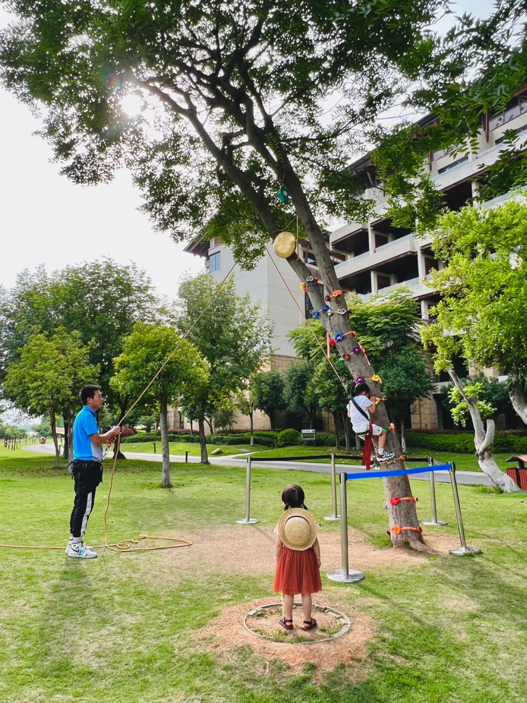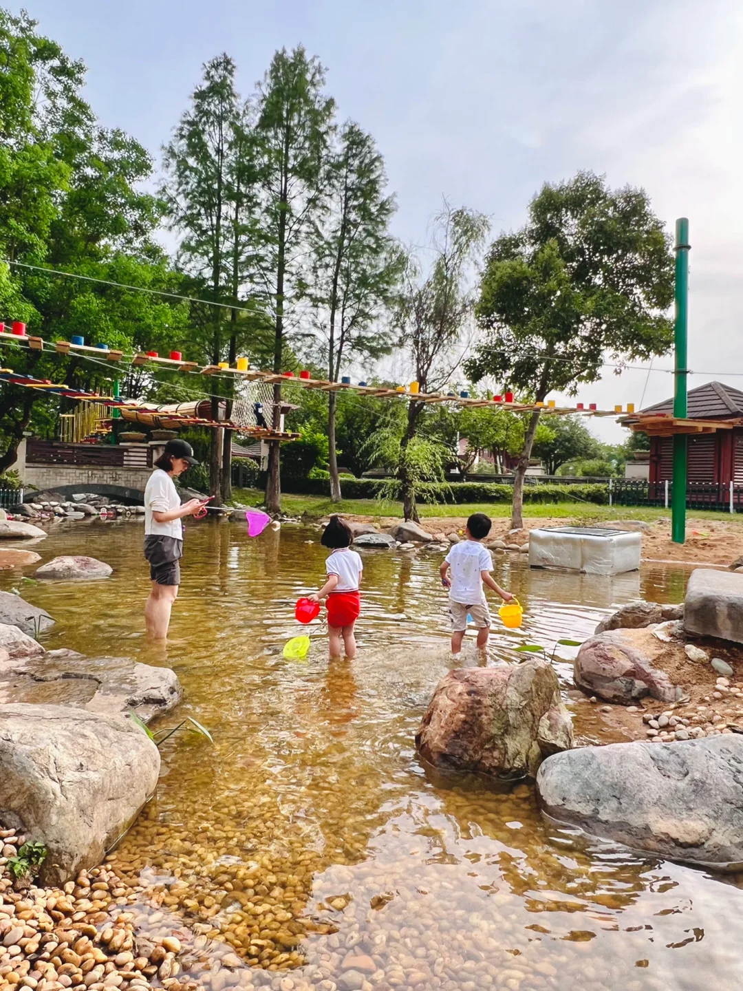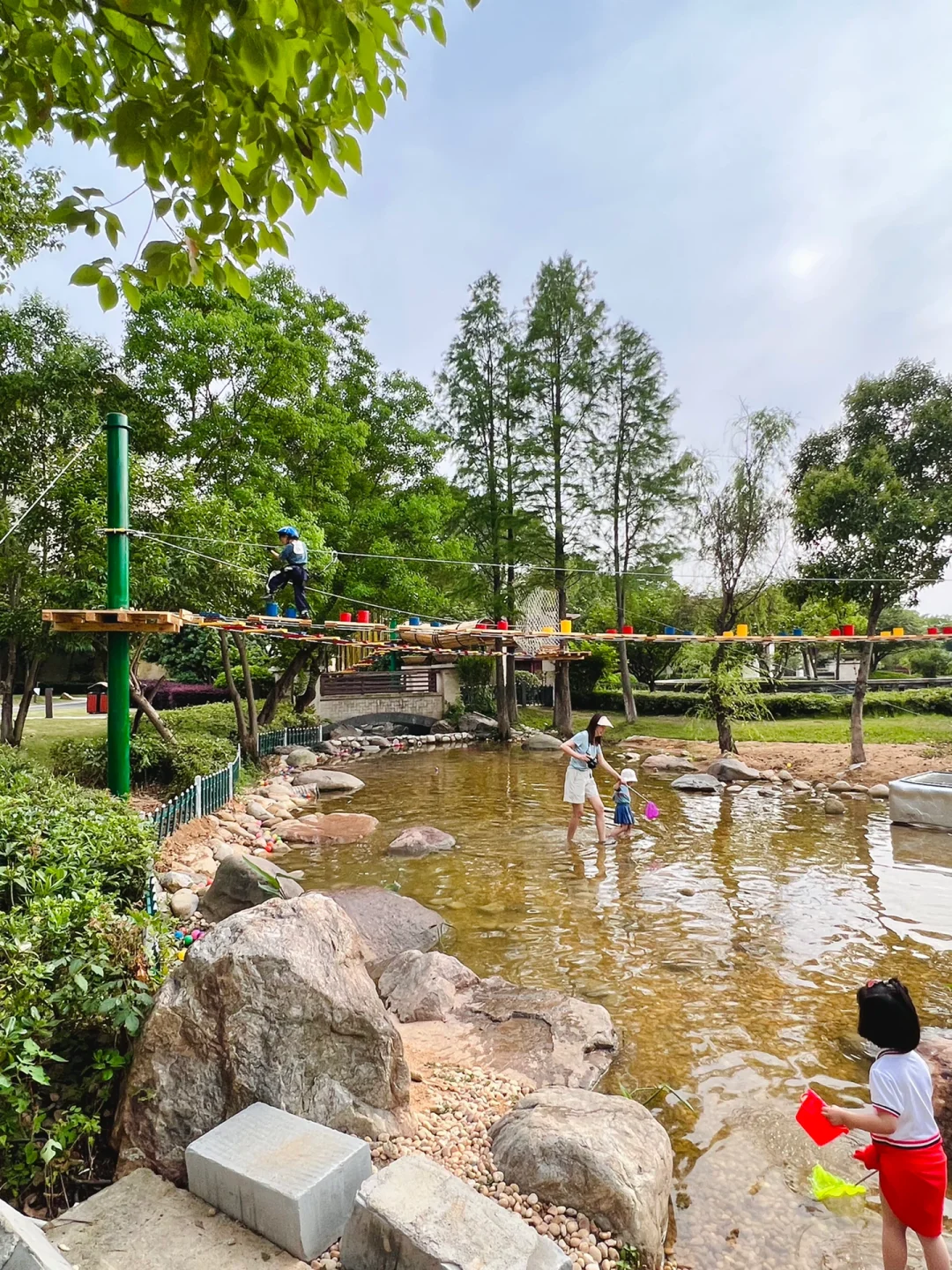 不出武汉的宝藏溯溪地被我找到啦! 都是手机无滤镜的原图 这里还有超美的大草坪🌿 坐在秋千上看远处的山景真的太美了~ 好适合露营野餐🖼 最满意的是这里的溪 虽然是人工的 但是水很干净💦 而且水不深对小宝贝也很友好! 里面好多🐟 可以捞鱼摸虾🦐 还有很多其他的游乐设施 小火车🚂攀岩,丛林穿越。。。 虽然是在酒店里面 但是不住宿也是可以玩这些项目的 这免费的大草坪真的绝绝子~ 大家六一带娃可以冲啦! 真的好适合带娃亲子游💕