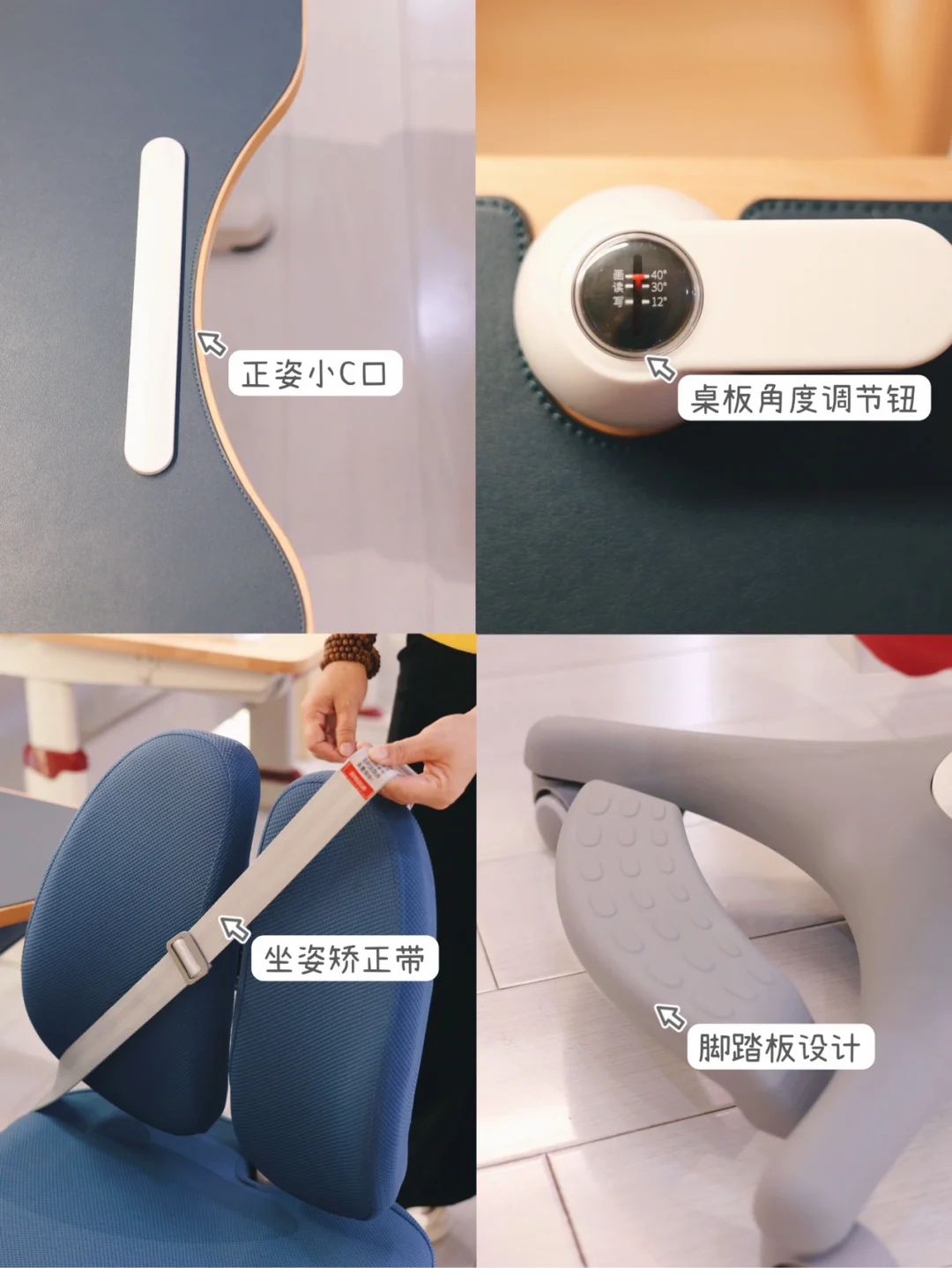 ✔️而且相较于其他品牌的学习桌,光明园迪学习桌的小C口设计我觉得很棒,当场就想买下。这是他们的一个独有专利——正姿小C口(含托衬板),其实就是学习桌在胸口的那个位置做了一个小凹槽,孩子的胸口刚好可以卡在那个位置,这样娃的胳膊也就刚好自然地落在了书桌两侧的托肘板上,双臂自然形成稳定的三角,这样坐下来的姿势就是标准的坐姿啦!有了这个小C口设计,即使学习时间久了,妈妈也不用再担心孩子趴桌、坐姿歪七扭八啦,矫正坐姿,效果杠杠的~