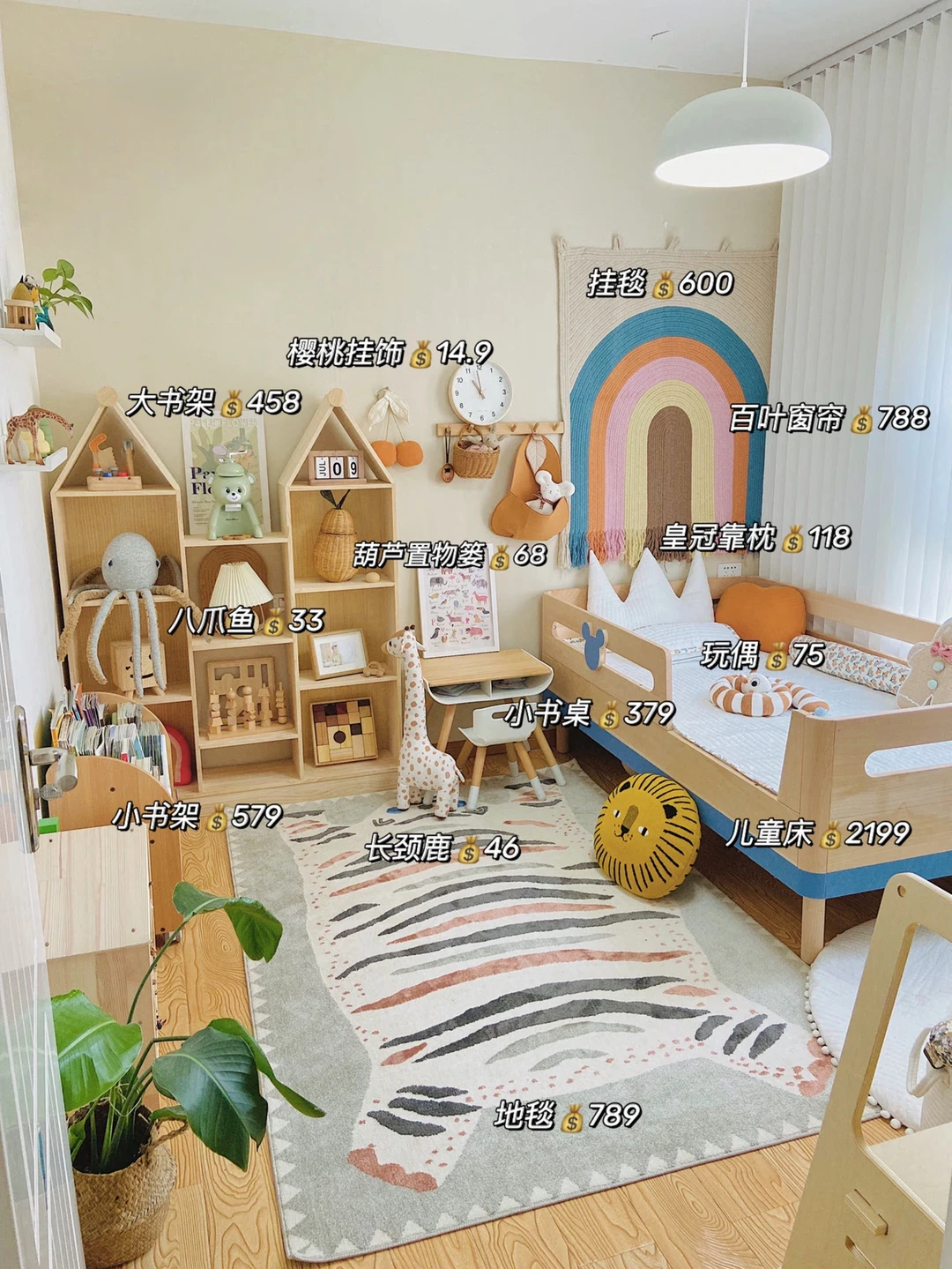 吐血整理的的儿童房清单🧾喜欢的就来抄作业吧~ 🏷儿童床/床垫:小鸡乔克chocchick 🏷窗帘:贵品 🏷小房子收纳架:蘑菇森林 🏷小书架/小书桌:德蕴宝贝 🏷床品:Cwtchb 🏷地毯:盼多多 🏷时钟:mjk居家日用店 🏷长颈鹿:哦塔塔 🏷梨子挂饰:matatakids 🏷葫芦置物篓:1688义乌市尚津电子商务商行 儿童房装饰|高颜值书架丨高颜值玩具|玩具房|婴儿房|ins儿童房|北欧儿童房|儿童活动区丨宝宝玩具|高颜值绘本收纳|儿童房装修灵感丨ins风好物