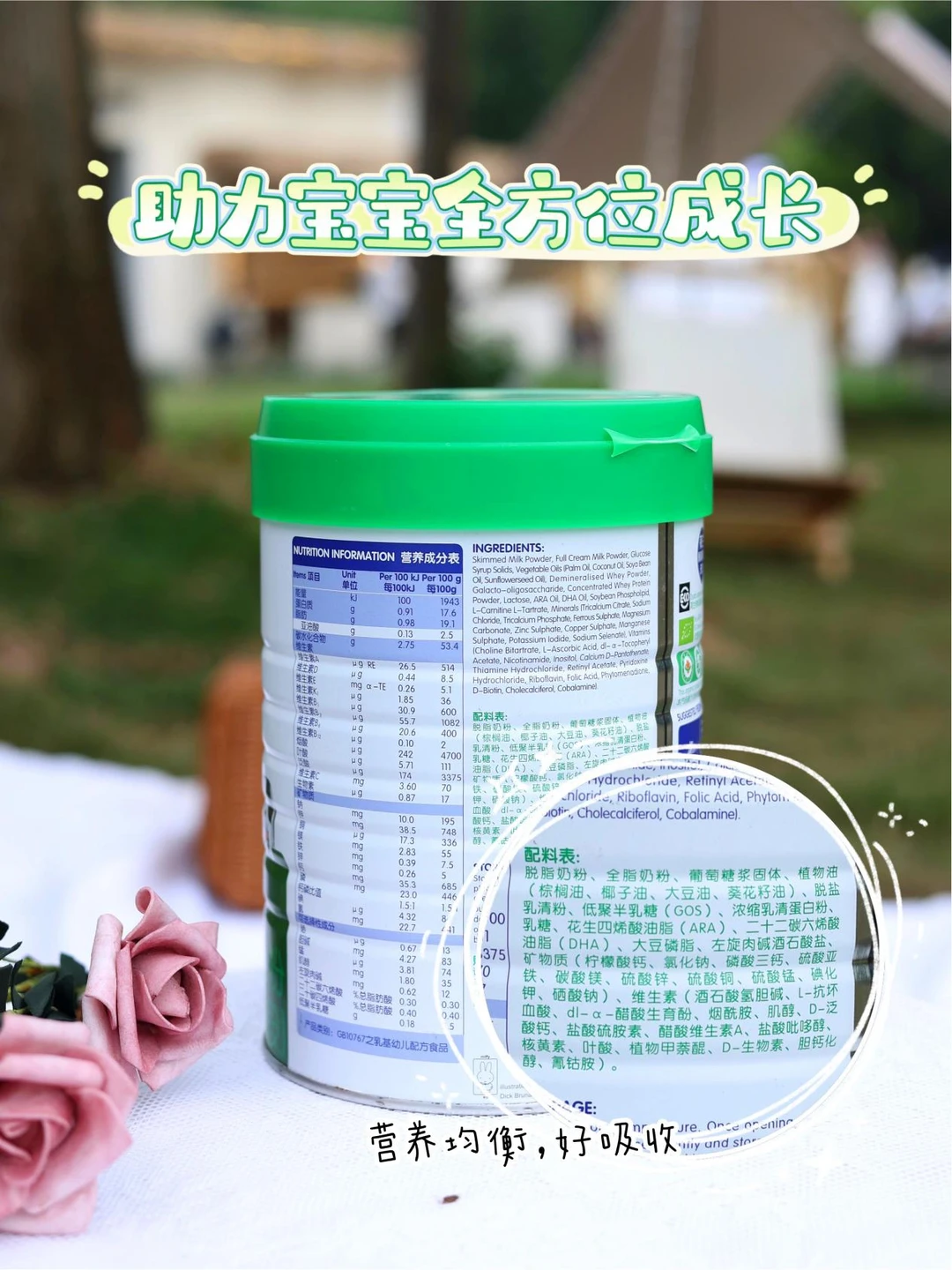 还添加了有机来源膳食纤维scGOS帮助宝宝建立健康平衡的肠道菌群,胆碱➕ 肌醇➕ L-肉碱更丰富营养黄金组合为宝宝健康成长道路锦上添花🌼