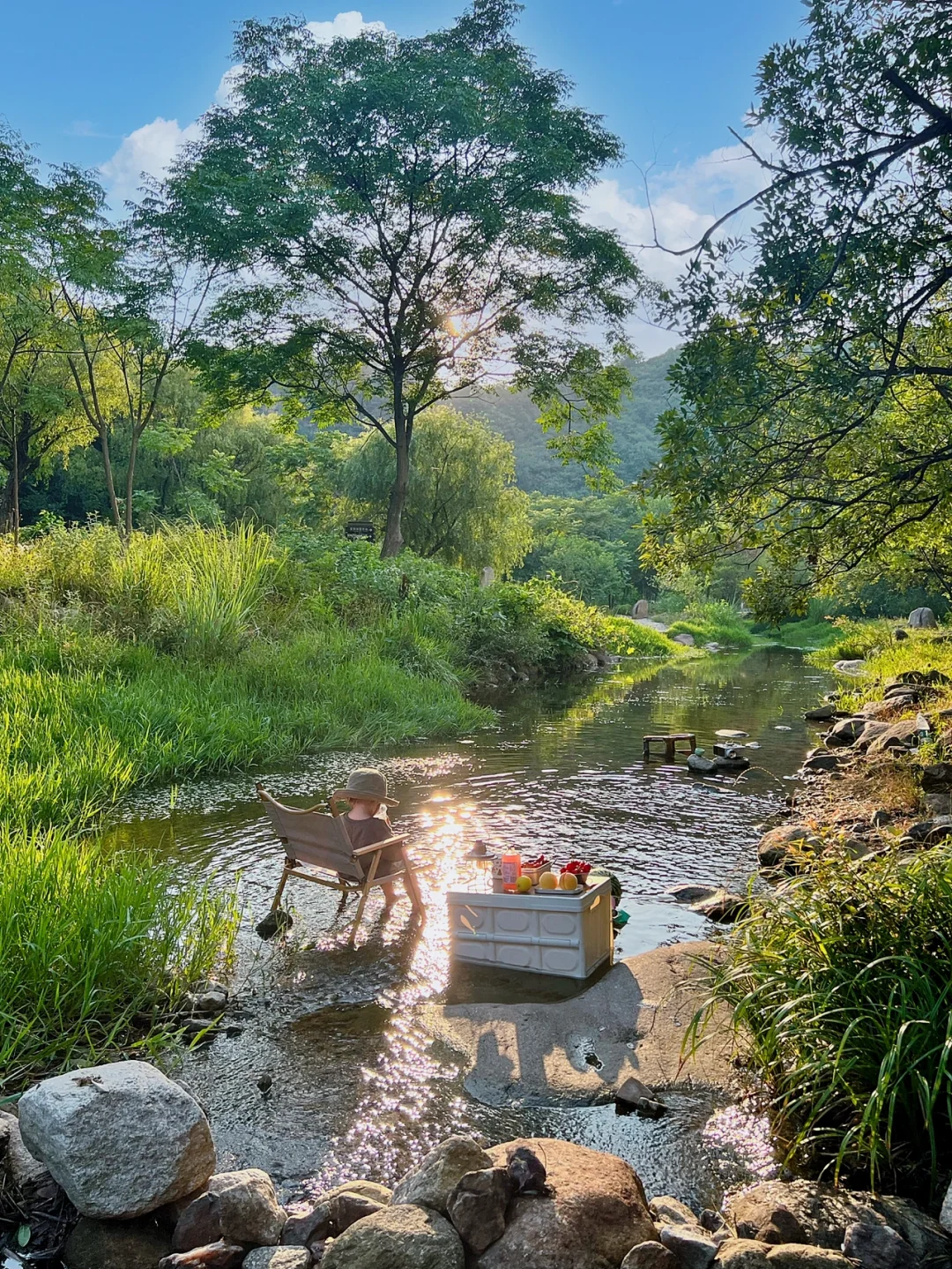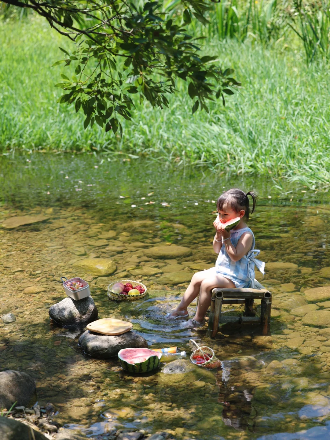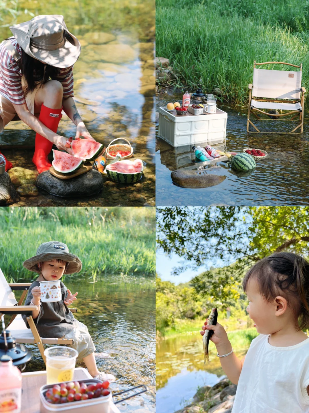 ⛺️带上露营的桌椅,在大树底下的小溪里面摆好,带上夏季的水果🍉还有饮料🥤,还可以煮上一个小火锅,娃在旁边摸鱼捉虾🦐谁说不是暑期完美的一天呢?