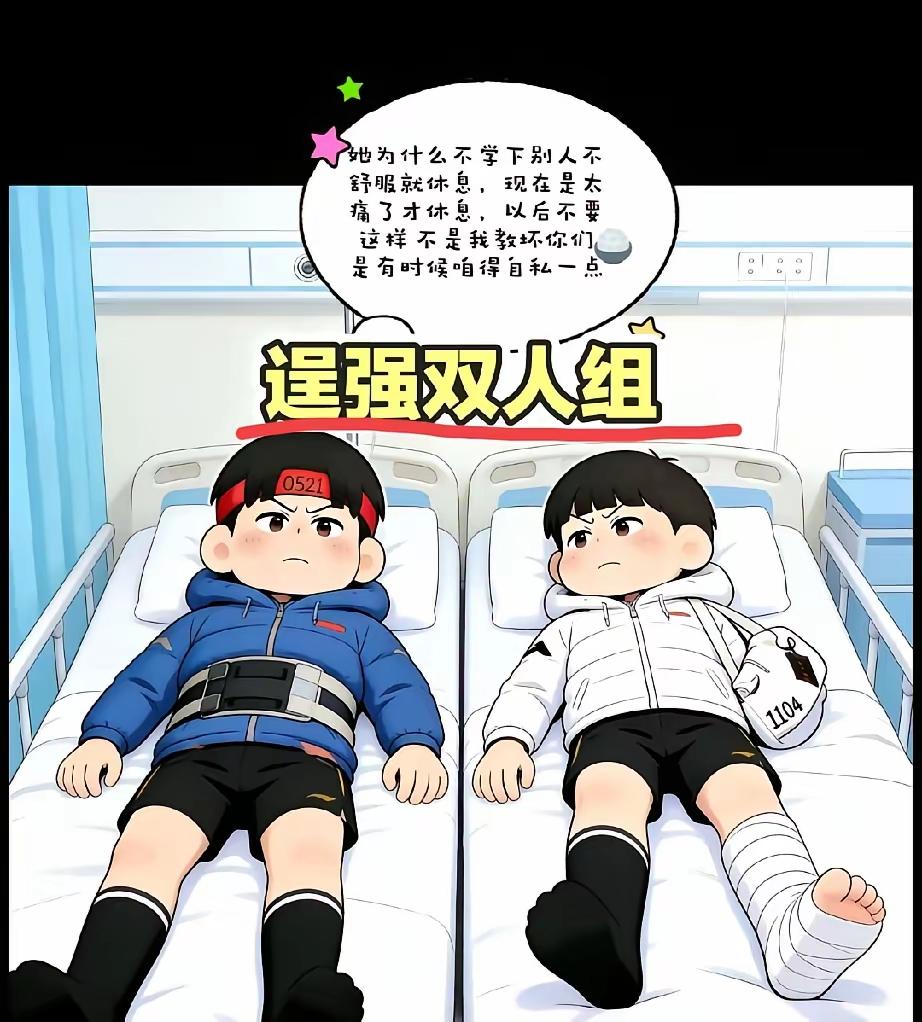 莎头是“逞强二人组”吗? 球迷给受伤后的莎头制作了几张图片,冠名以“逞强二人组”,这几张图片这几天红遍网络。 说实话,“逞强”一词,从感情色彩上看,是妥妥的贬义词。但是当我们阅读完第一张和第二张图的“文字解说”后,就不难发现,图片制作者怀着对莎头深深的疼爱之意,是典型的“贬词褒用”,是妥妥的褒义词。图片制作者用心良苦,辛苦了。 话说莎头,以后确实不能这么“逞强”了,虽然你们的坚强与顽强大家看在眼里,更疼在心里。但是切记,只有好的身体才能体现坚强与顽强,才能为国更好的争光。 大家伙儿说说,是不是这个理儿?