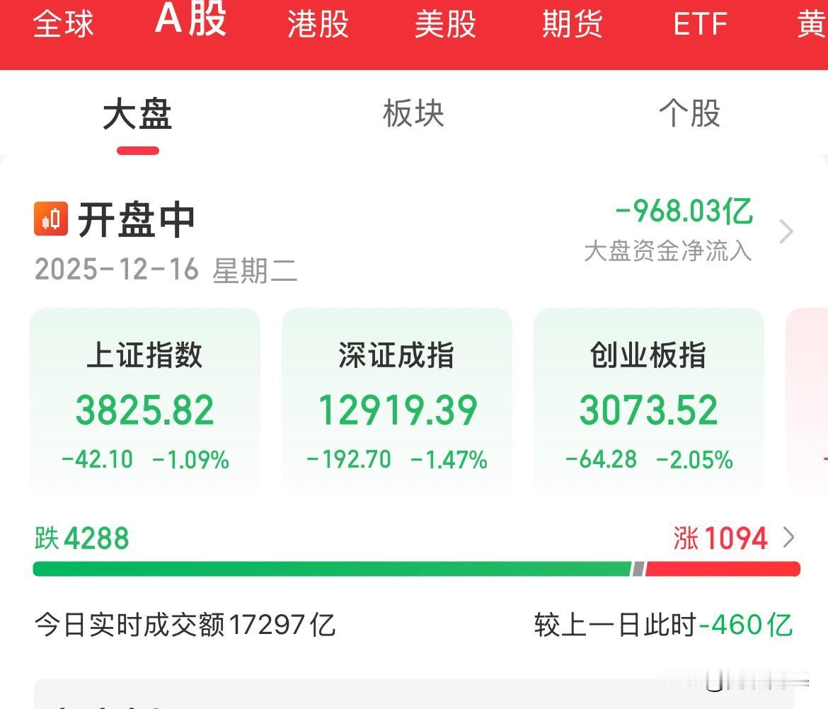 1.7万亿,内资疯狂流出950亿,创业板跌幅2%,亚太市场全线重挫,A股、港股全线遭遇重挫 午后短线反抽没力,尾盘继续下去,创业板跌幅2%,一碗大面还是躲不过,连跌三天,所有都在喊调整确立开始了, 是躲还是溜,还是卧倒不动,这样的调整,最终还是散户承担了所有, 满屏的找理由,但不影响亏钱,日本加息板上钉钉了,临近年底了还是求稳为主。