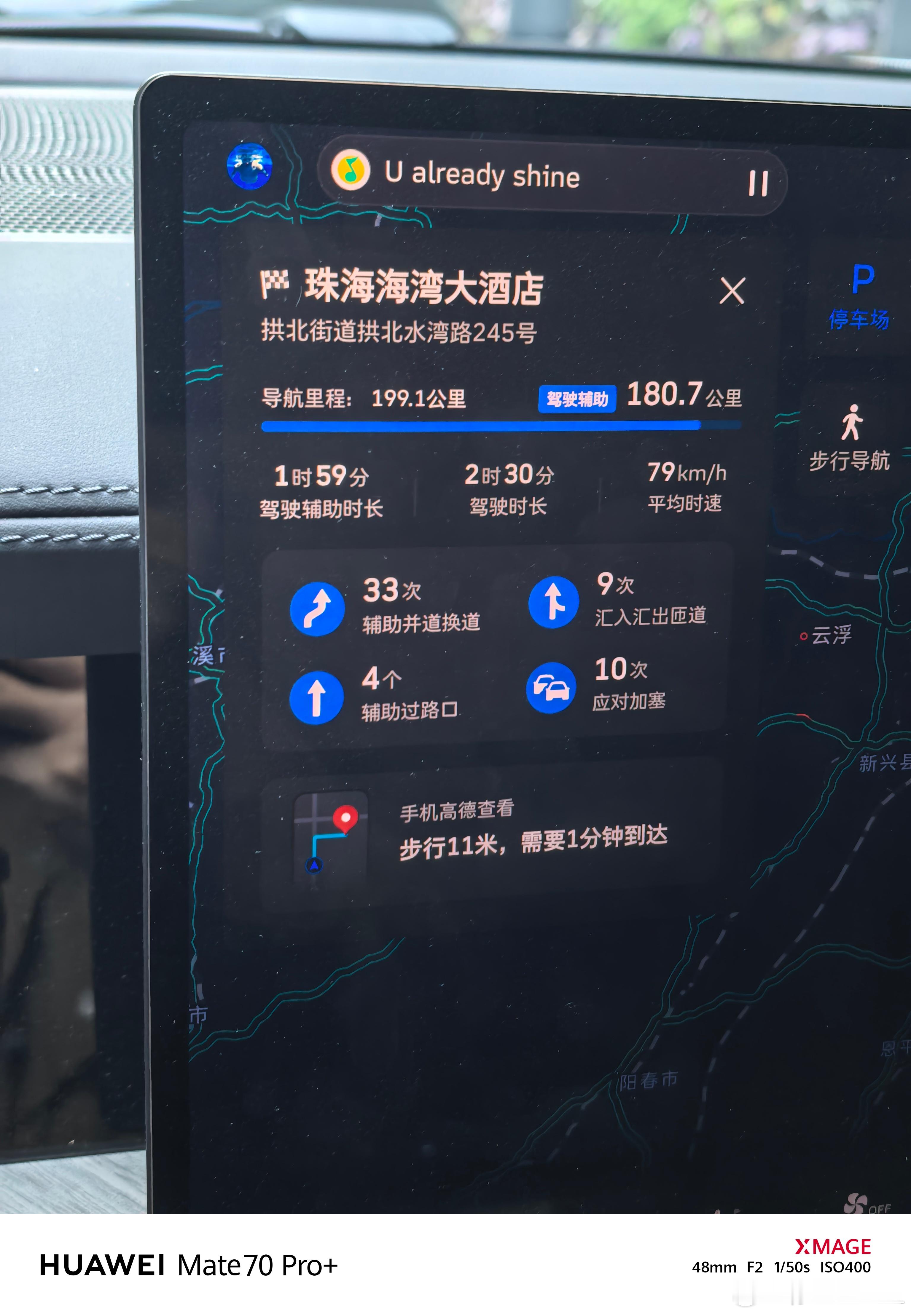 500Hi4-Z的高速能耗基本就是这个样子。199公里的路,智驾开了180公里。