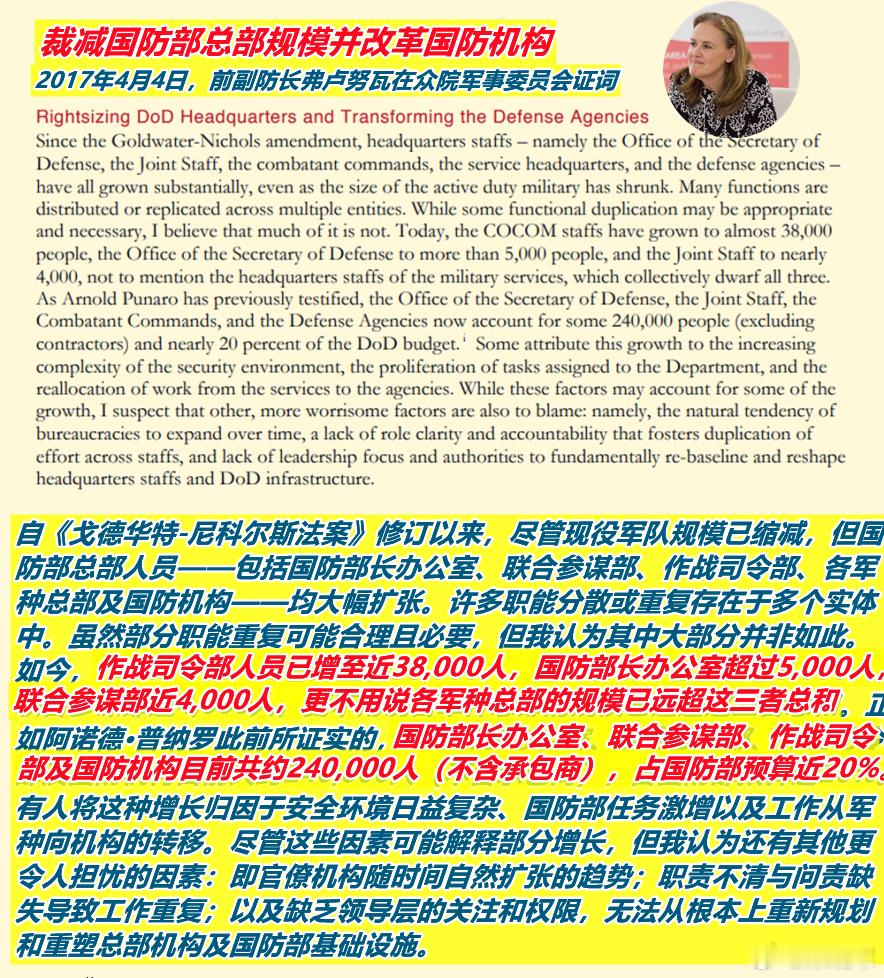 图1:朋友问咋看《华盛顿邮报》的这报道?图2:我给推了2017年年前美副防长在众院要求“大军改”裁人的证词后回答说:八年前解放军刚刚开启“裁闲人、除孬人、资源向一线作战部队倾斜”的“大军改”后不久,美前副防长“团灭姐”就意识到了解放军要“雄起”。于是她在国会马上提出了貌似“向解放军学习”的建议。没想到,当年她的建议竟然让应该是她最看不上的“海排长”推出来实施了。