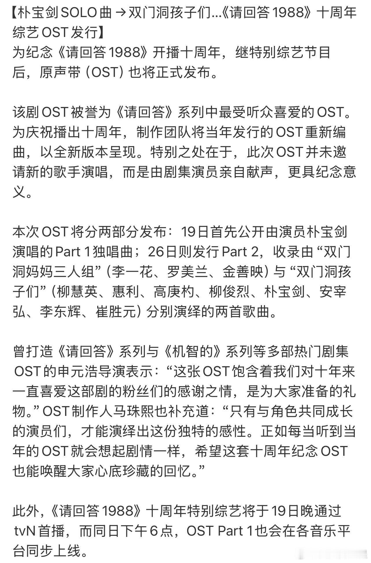 请回答1988发布十周年纪念OST朴宝剑请回答1988独唱曲《请回答1988》