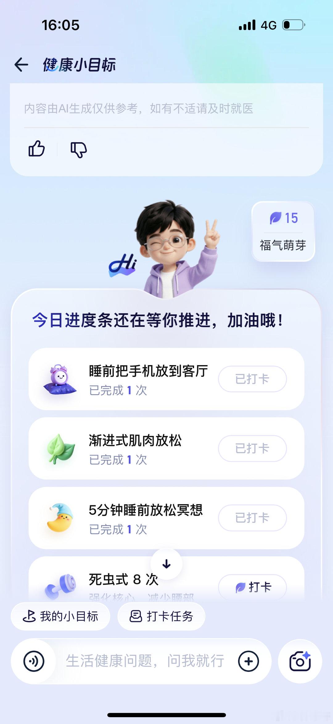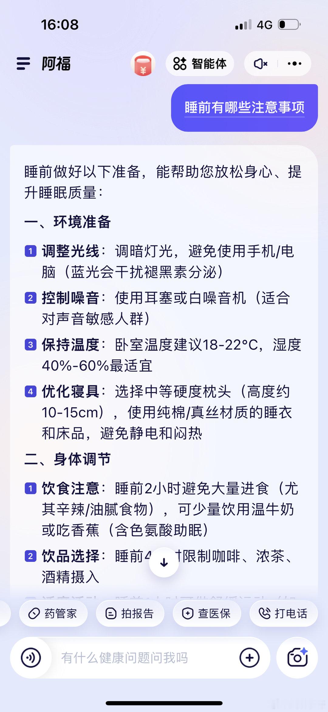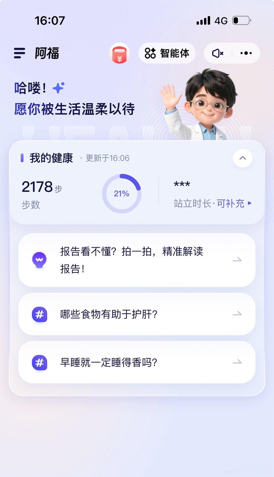 阿福从智能手表里读懂了我的睡眠睡眠质量关系到一个人白天的精神是否饱满,还在为睡眠质量困扰吗?阿福这个搭子已经规划好睡前的目标,实时同步智能手表,化身你的睡眠管理大师。它精准捕捉你的睡眠周期,深睡、浅睡、 REM 睡眠一目了然。根据专业睡眠质量管理体系,为你生成专属睡眠报告,同步推送改善建议。从入睡到醒来,它懂你的每一次呼吸,助你拥有婴儿般好眠,开启活力满满的每一天。