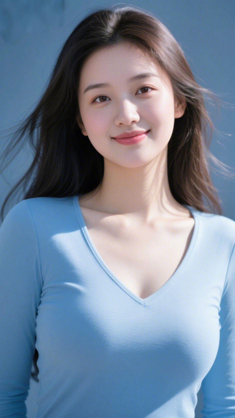 《浅蓝里的晴日柔》 风掠过她垂落的发梢,浅蓝衣衫像裁了片晴空裹在肩头,连落下来的光影都浸着软意。 她抬眸时,笑意里沾着日光的暖,唇色是春樱初绽的淡粉,眉眼间漫开的清透,像把生活的匆忙都滤成了此刻的轻缓。发丝随微风轻晃的弧度里,裹着松弛的舒展——这哪里是一件寻常衣衫?是把日常的温柔,织进了布料的纹理中。 不刻意的美,从不是雕琢的姿态,是眉眼间自然漫开的舒展,是衣衫裹着的自在。连空气里都漫着晴日的轻软,让平凡的时刻,也浸满了温和的气息。 浅蓝穿搭氛围感 日常温柔美学