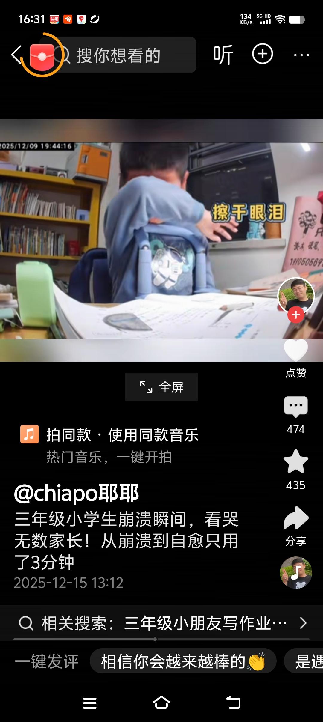 一个三年级的小男生在写作业的时候写到崩溃, 不过孩子三分钟调整一下情绪就自我治愈了! 大多数学生 如果课堂注意听讲老师讲课的内容都听明白了,再回家做作业的时候会很迅速的,当然学习习惯不好的同学除外会写得很慢! 一般的在两个小时之内就会完成做作业的。 如果老师留的作业太多, 那些罚写的作业重重复复的作业,家长有权利不让孩子写那么多。 小区里的几个家长都说了,他们孩子老师留作业的时候说内容,明天要测验的,在家练会了就可以这样的作业就好很好! 有的家长心疼孩子,老师留的作业太多,一般孩子在写完自己应该写的作业就不再写太多了,大约在晚上九点多钟的时候,孩子就停止写作业了。 现在有些老师在留作业的时候也会很谨慎,都会补充上一句,如果我自己要是练会了,就可以不写这么多遍了,或者是说老师,今天作业有点多,如果觉得自己写起来很费劲,完不成的话,不要写的太晚! 这样的韩信留做作业的方法确实直的点点赞! 像视频中的男孩写作业,写到崩溃的程度,是因为他遇到了难题,写着写着觉得心烦意乱写不下去了,就痛哭流涕,可是自己调整了一下,马上恢复平静, 如果孩子遇到写作业,写到痛哭流涕的时候,家长要安抚遇到难题,家长适度的辅导应该尽早的把孩子情绪调整过来! 这个时候可以带孩子出去走走,会让孩子吃一些美食,给孩子安慰一下,这个时候 一定不要逼迫孩子非写不可!