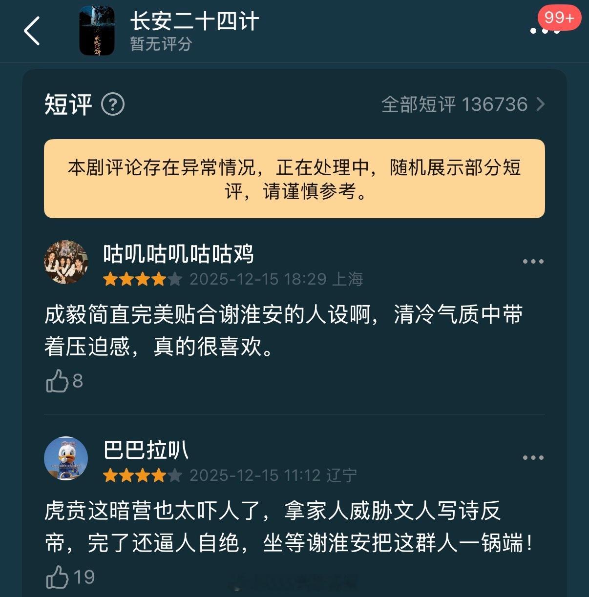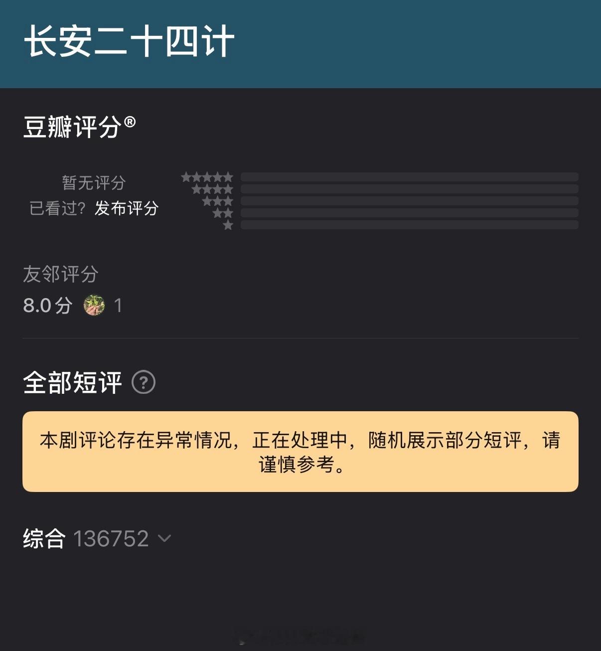 《长安二十四计》豆瓣评分异常了,评论被折叠了正在处理中