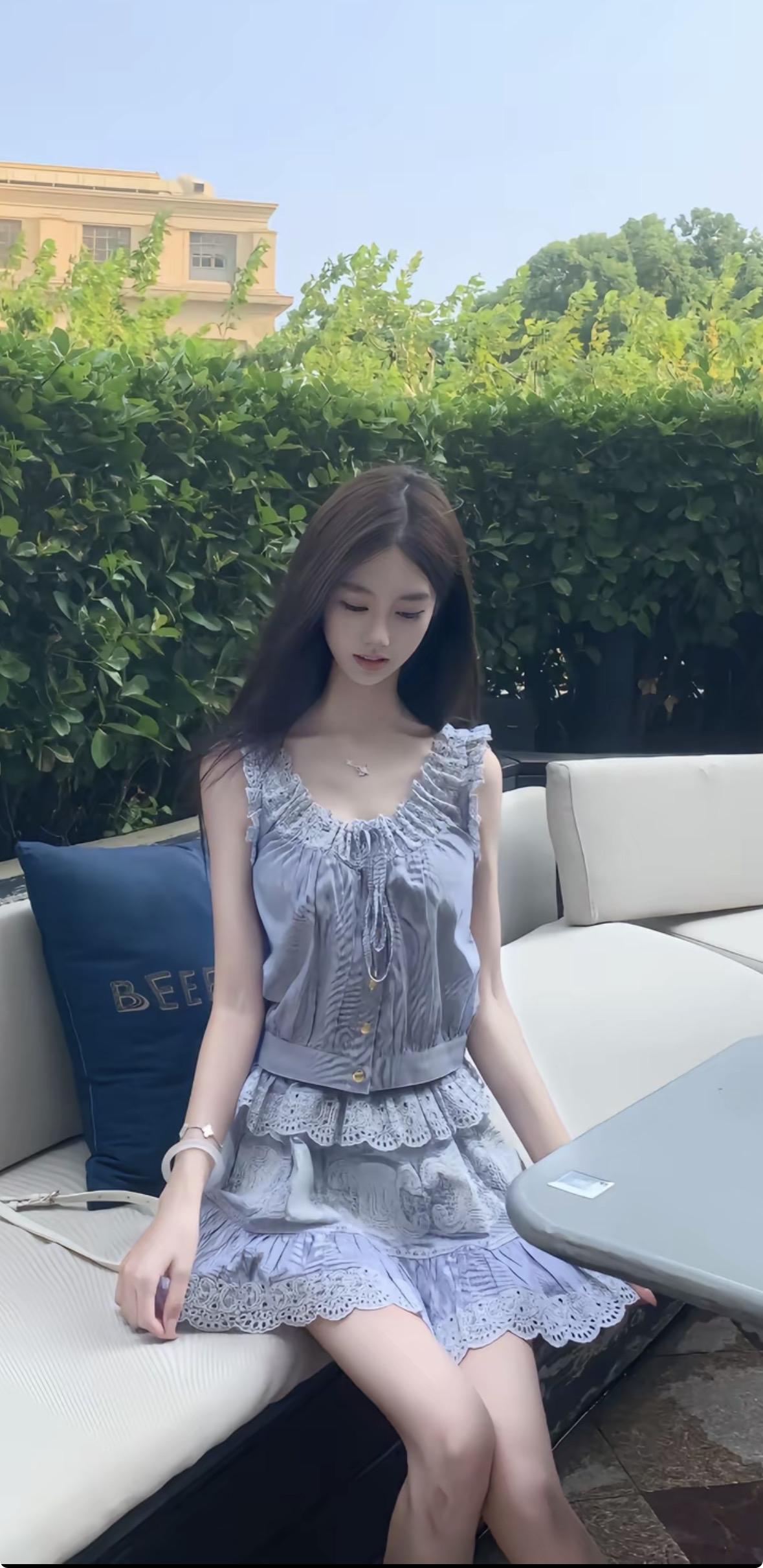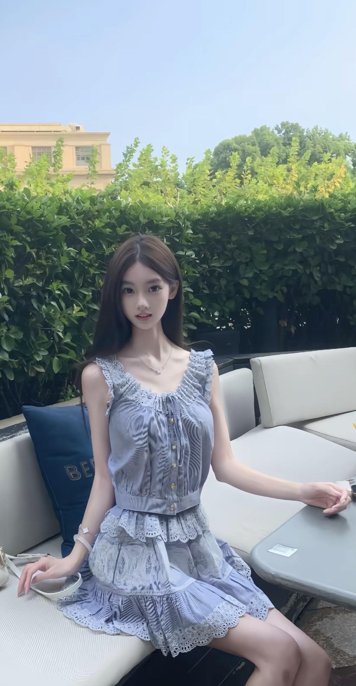 夏日清新穿搭,浅蓝色连衣裙,搭配白色手提包,享受悠闲午后时光。