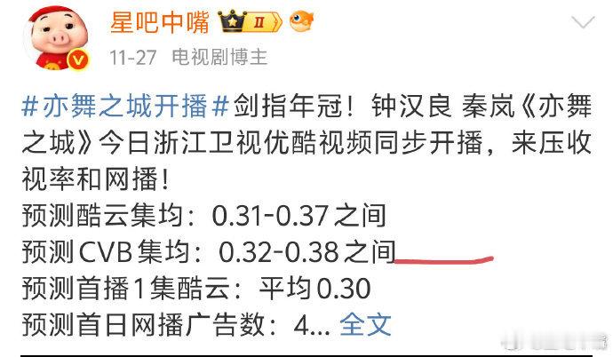 亦舞之城 钟汉良秦岚《亦舞之城》浙江卫视收官战报!恭喜暂年冠!全剧酷云集均:0.3625,暂列1/19全剧CVB集均:0.369,暂列1/19开播之前预测全对。CVB前三名都预测对了哦,连续三部预测正确