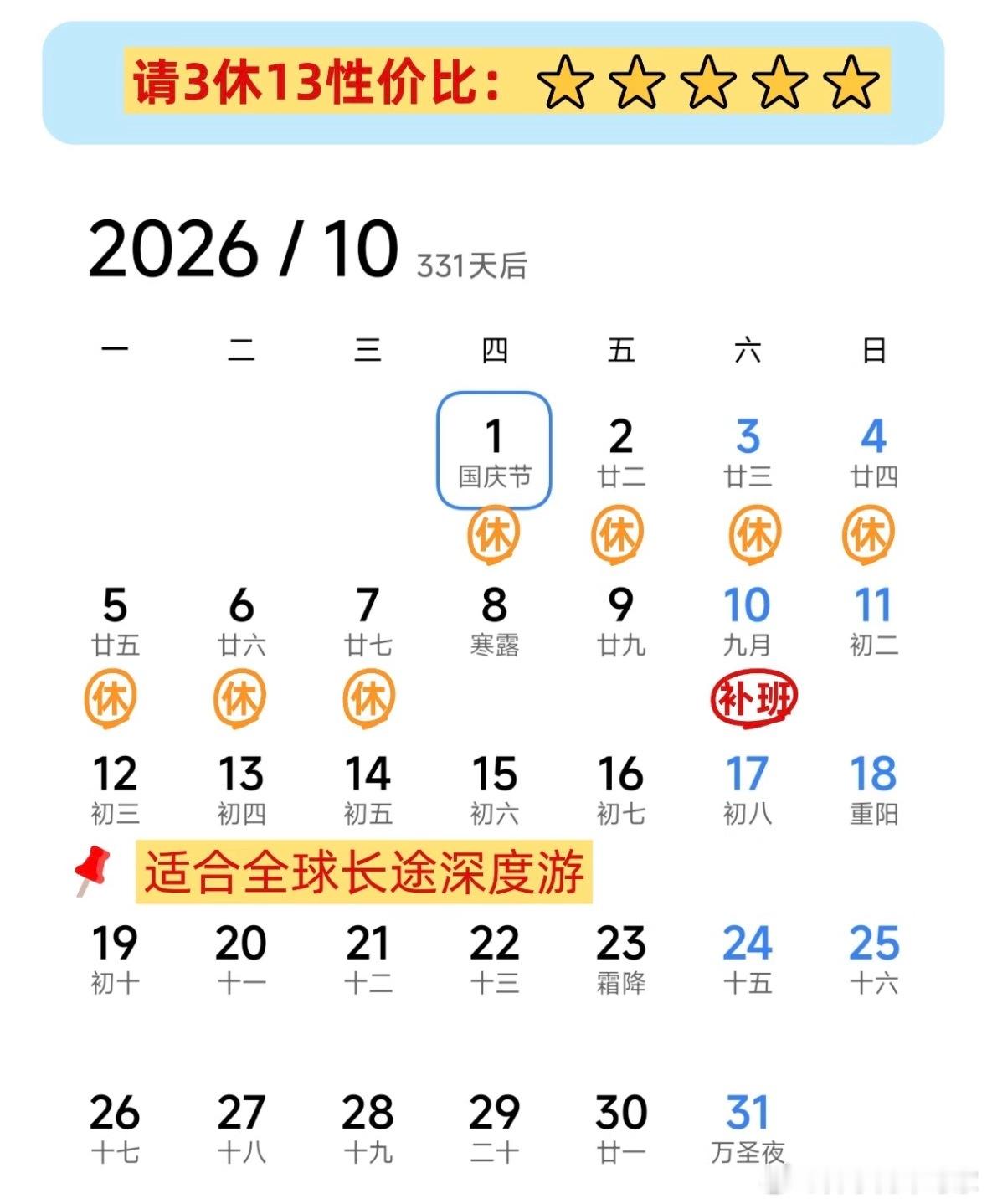 好家伙,2026年还没开始,请假协修大法已经出来了,我觉得这里面也就元旦请3休8和国庆请3休13推荐,你觉得呢?元旦请3休8