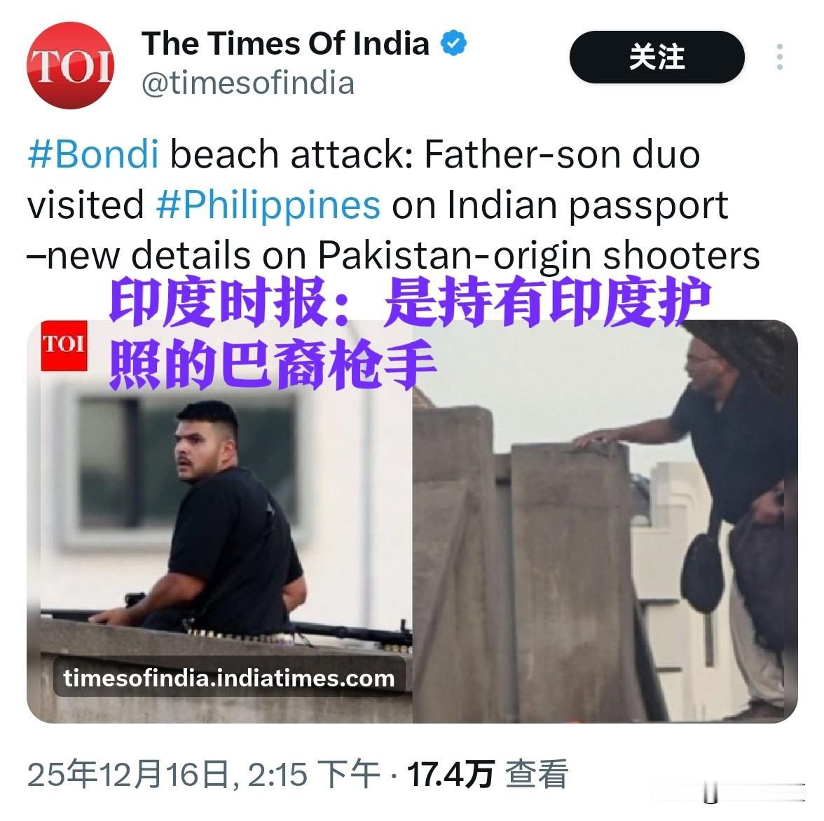 澳大利亚枪手父子到底什么族裔,印度那边吵翻了: - 印度媒体先炒说是印度隔壁的人。 - 于是父子俩的白人邻居上电视澄清父亲是印度人,儿子是在澳大利亚出生。 - 美国彭博社核实,父亲的确使用过印度护照入境菲律宾。 顶不住真相的印度媒体,依然在嘴硬……肉眼可见的心疼。