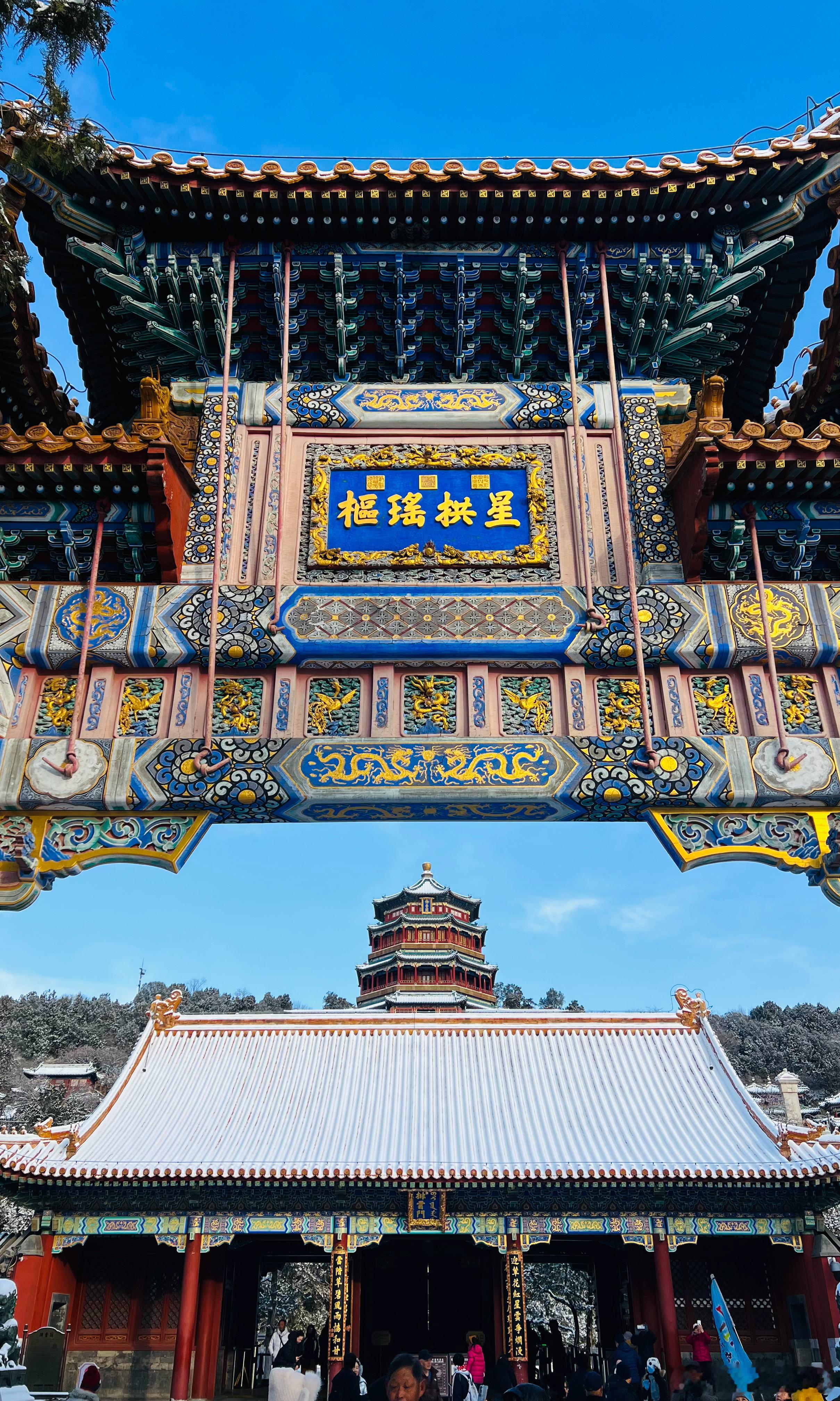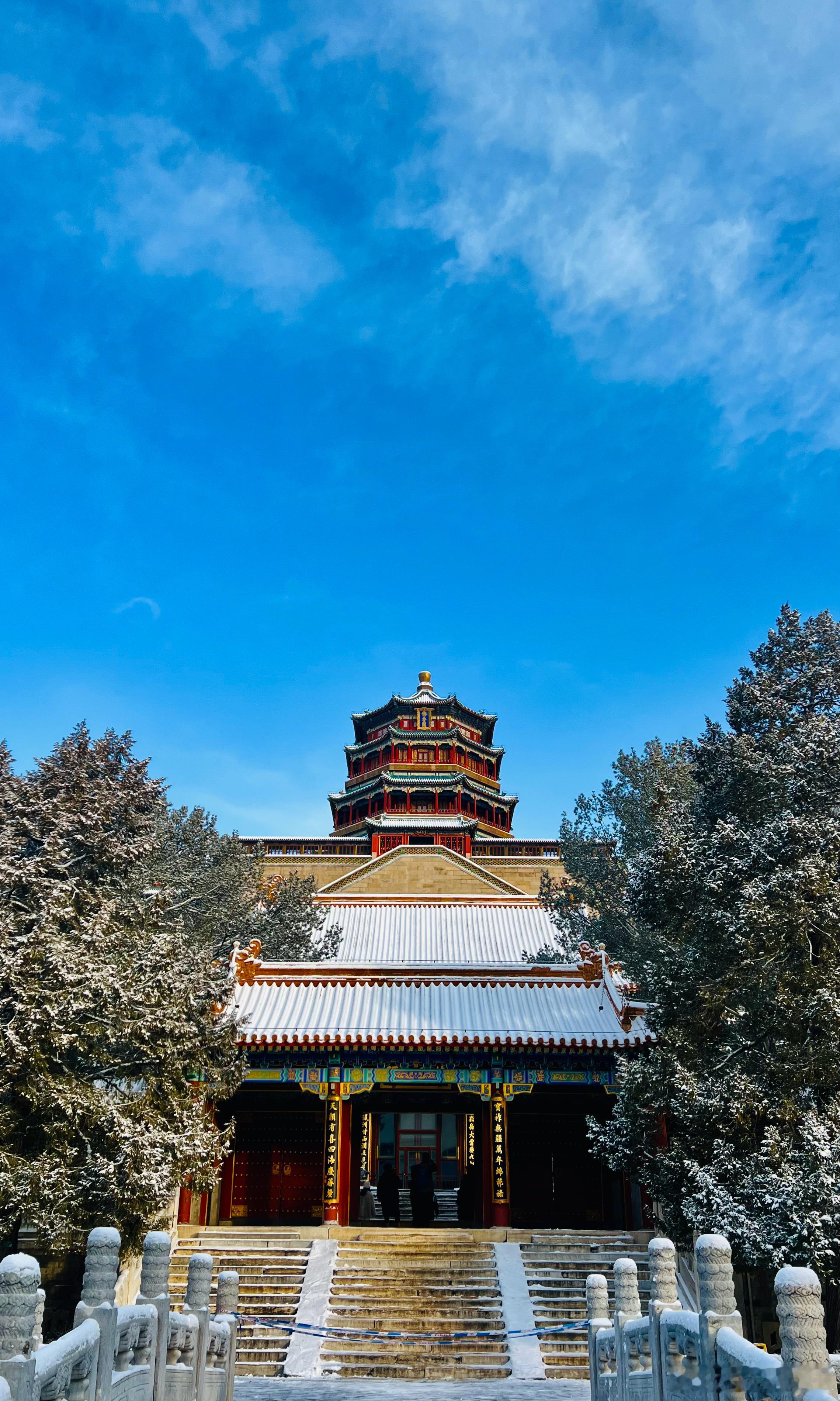 古建繁花颐和园 佛香阁 海棠花开摄影